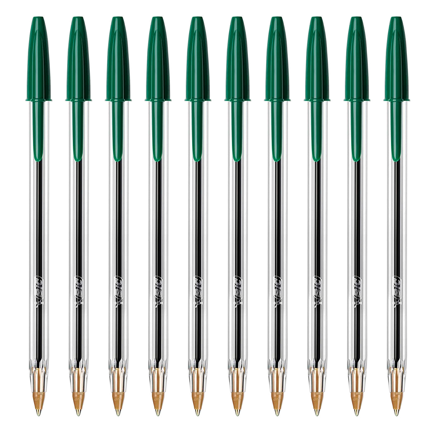 Set de 10 bolígrafos BIC Cristal Original con punta media de 1.0 mm y trazo de 0.4 mm, que se desliza por el papel con suavidad para ofrecer una escritura sin manchas. Diseño eficaz, sencillo y fiable con un cuerpo transparente que permite comprobar en todo momento el nivel de tinta.