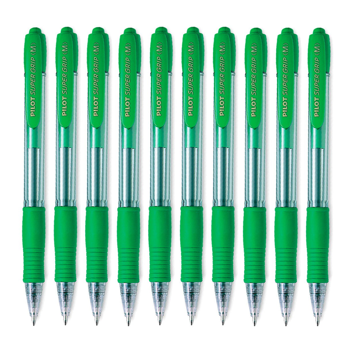 PILOT - Caja de 10 Bolígrafos Super Grip Retráctil de Punta Media Tinta en Aceite. Verde