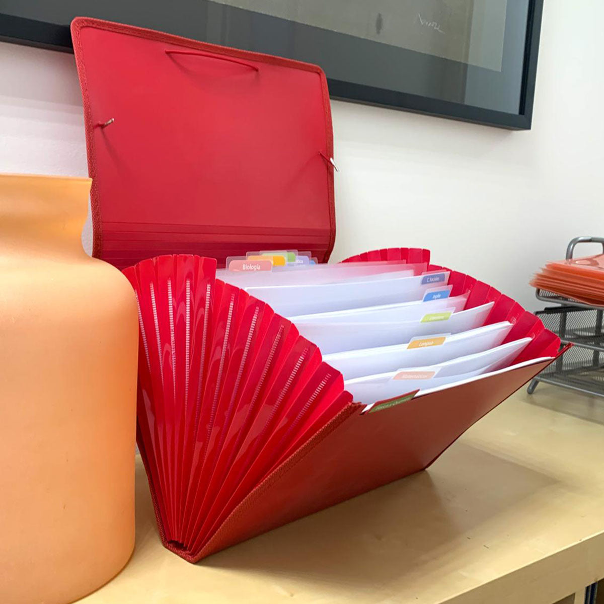 Cierre de goma para evitar que se abra accidentalmente y tarjeta identificadora para poderla personalizar con tus datos. Al ser en formato acordeón, podrás clasificar en ella multitud de documentos.