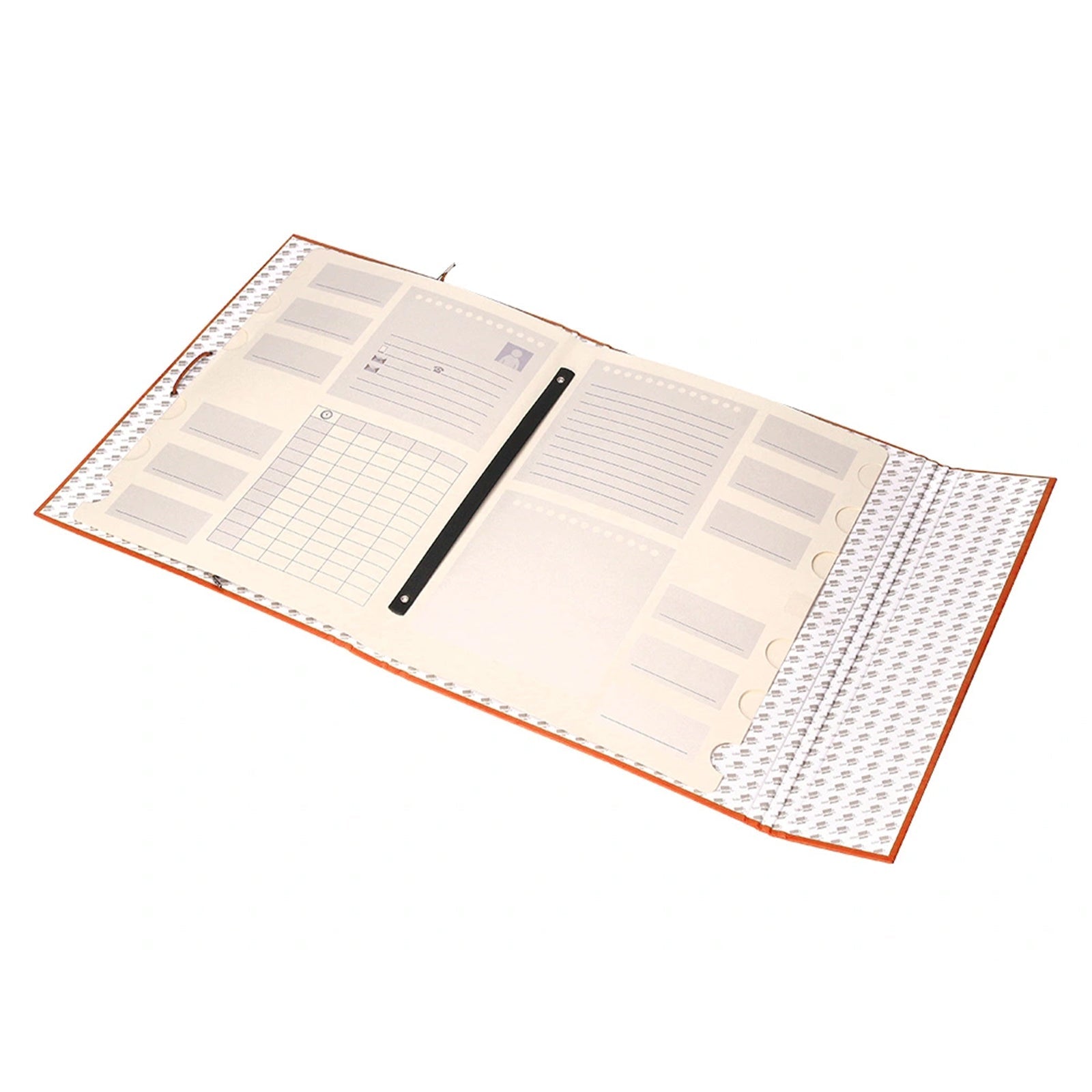 Guarda interior impresa, posee solapa y divisor de 12 departamentos. Cierre con gomas Tamaño folio prolongado.