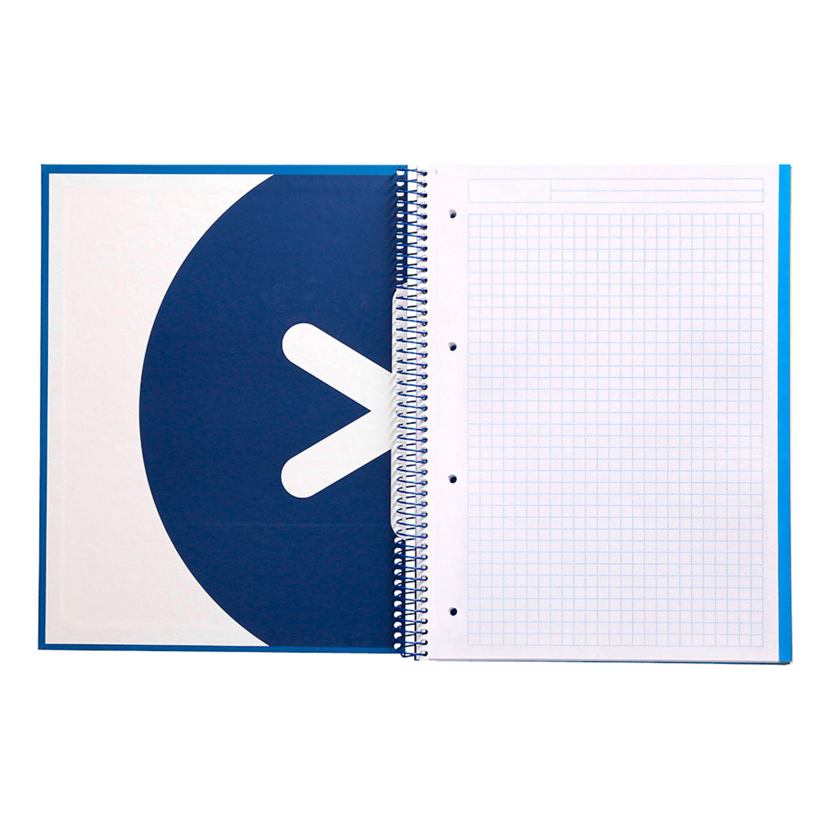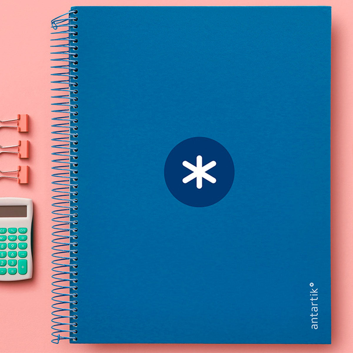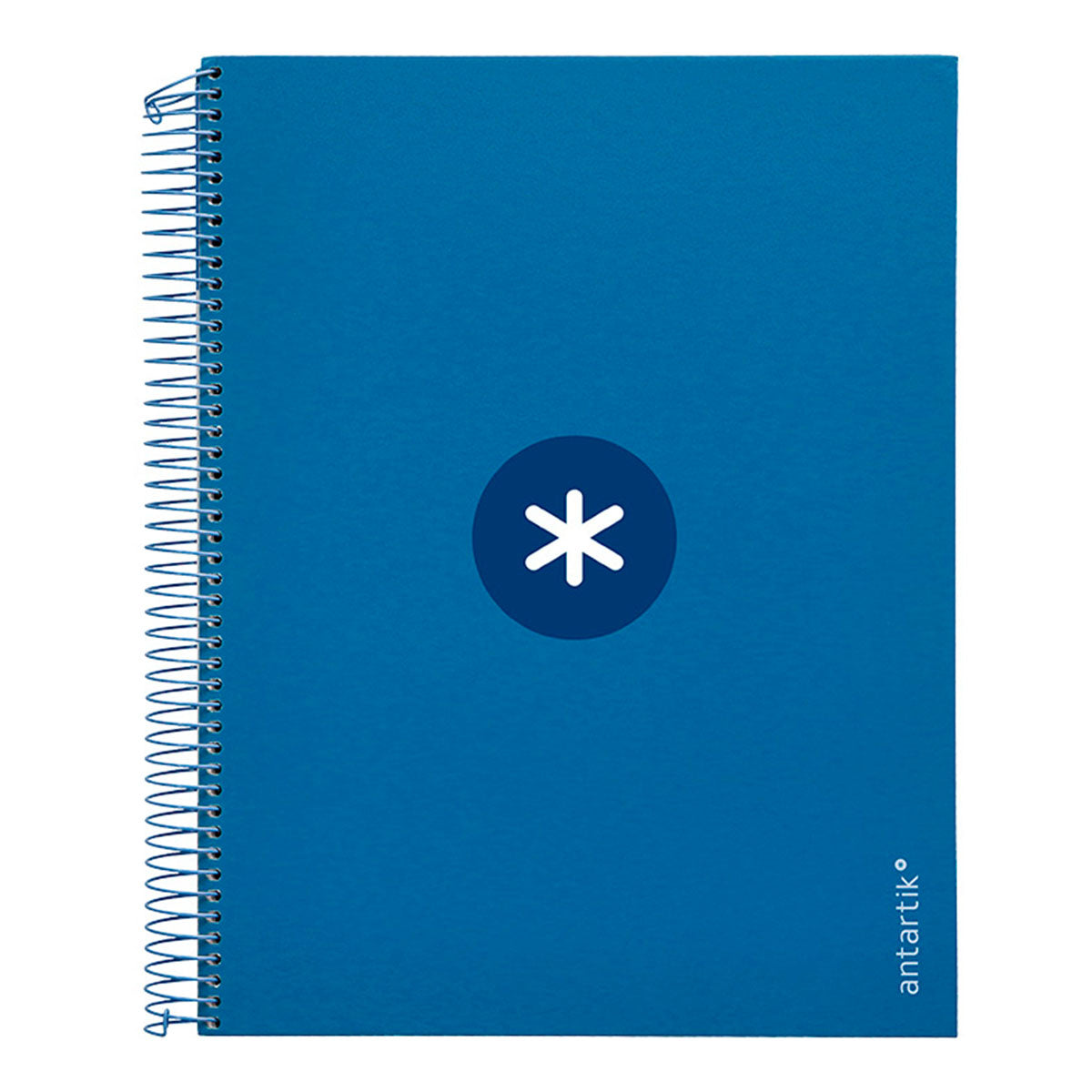 Cuaderno espiral microperforado Antartik en formato DIN A4 con 120 hojas de 100 gr de grosor. Cuadrícula de 5 x 5 mm enmarcado con cabecera para la identificación del tema, fecha, etc. Con 5 bandas de colores para separar asignaturas y 4 taladros de archivo compatibles con carpetas de 2 y 4 anillas y archivadores palanca. Hojas microperforadas con iniciador de desgarre para poder arrancarlas fácilmente y archivarlas.