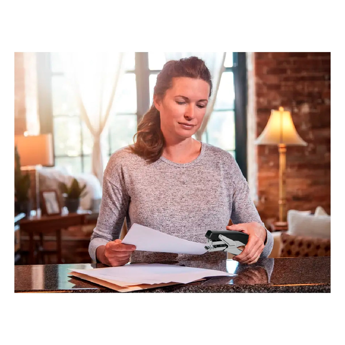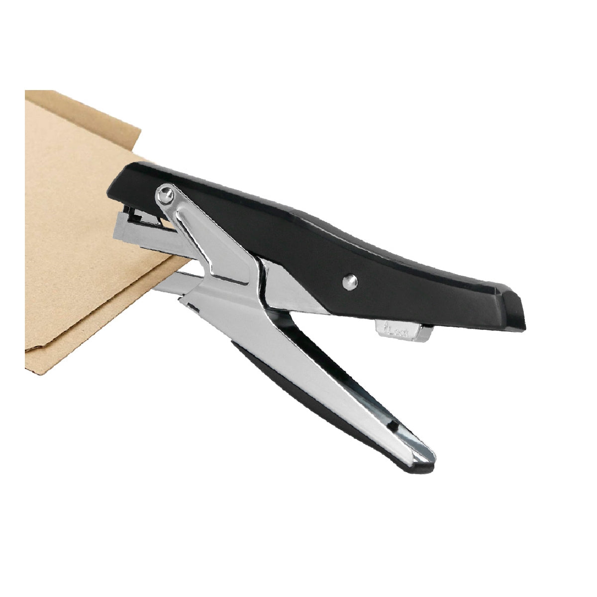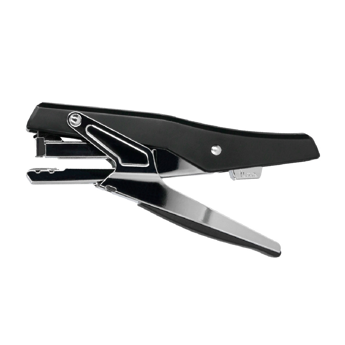 Grapadora de tenaza metalizada de alta calidad y resistencia. Carga trasera. Grapado plano.
