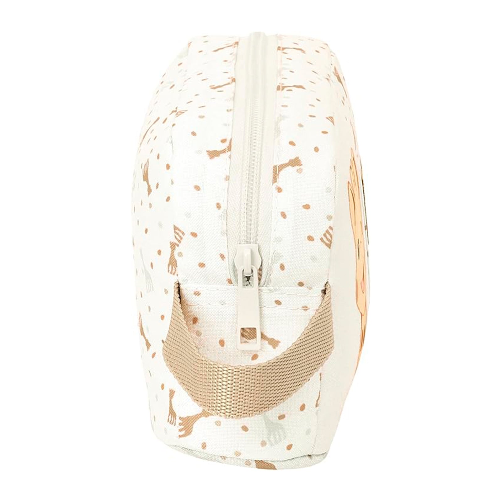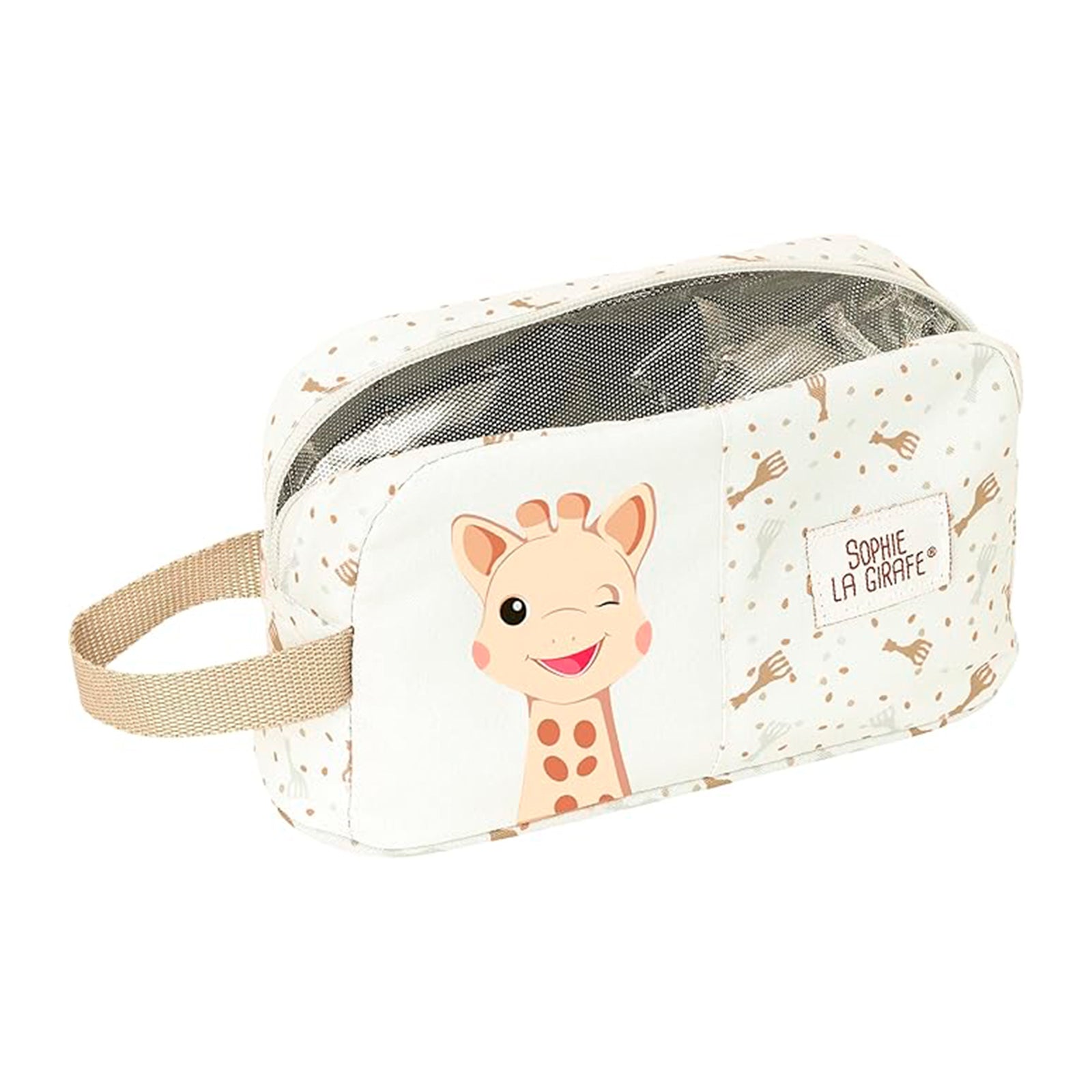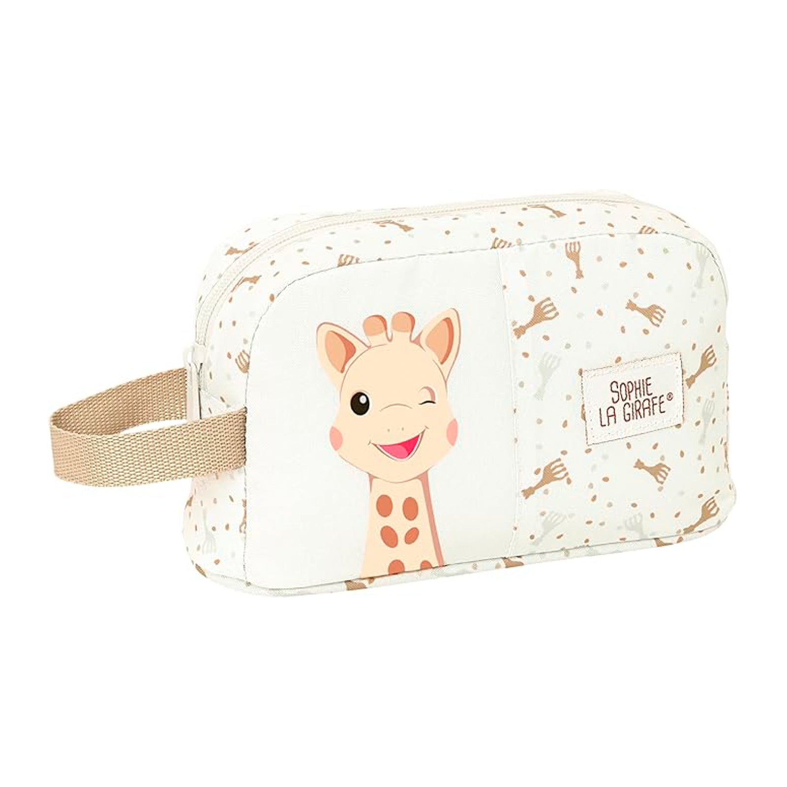 Portadesayunos Térmico Reciclado y Repelente Agua con Sophie la Jirafa en su diseño frontal. Confeccionado con un material de poliéster muy resistente y tejido térmico fácil de lavar. Mantiene la temperatura de la comida gracias a su interior forrado de aluminio para mantener frío-calor. Tiene una asa de mano en la parte lateral ideal para el dia a dia de niños, adultos y adolescentes.