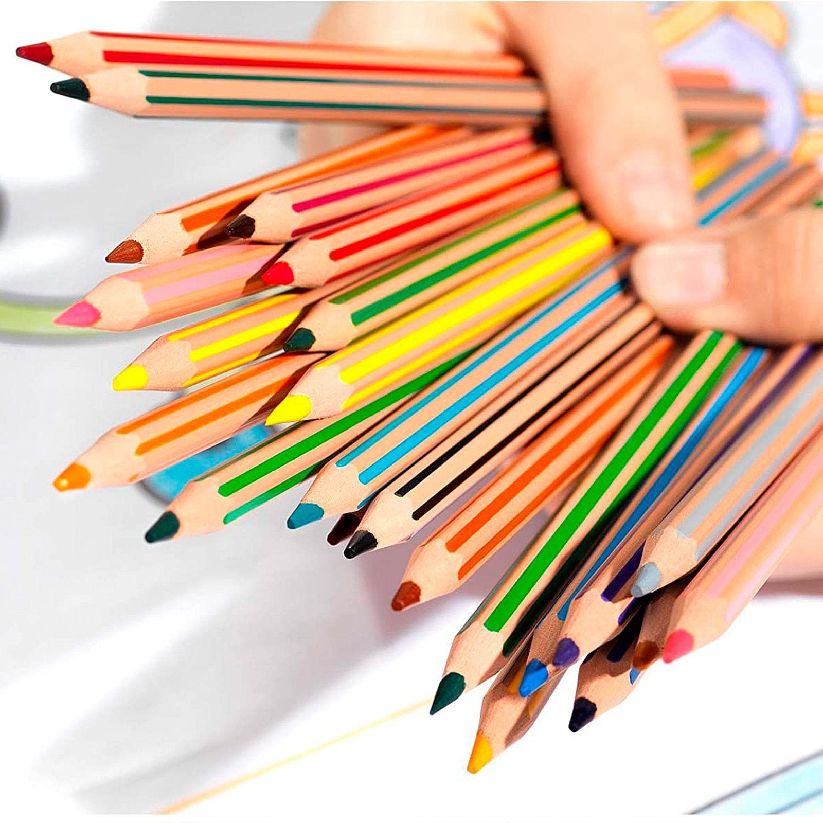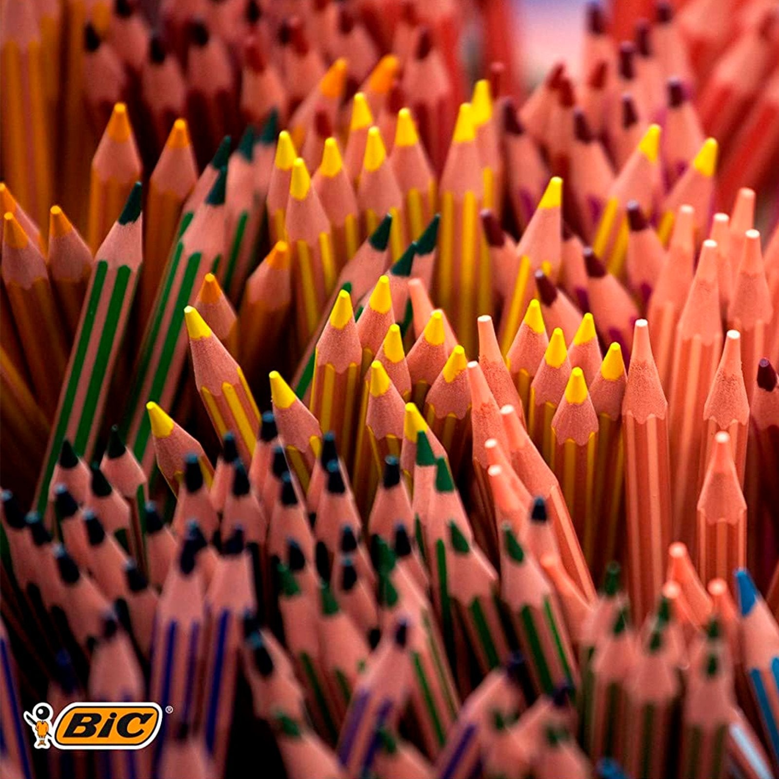 Caja de 12 lápices hexagonales de colores surtidos ultrarresistentes gracias a la envoltura de protección de la mina, con franjas de colores de afilado fácil. Son perfectos para dibujar y colorear a diario.