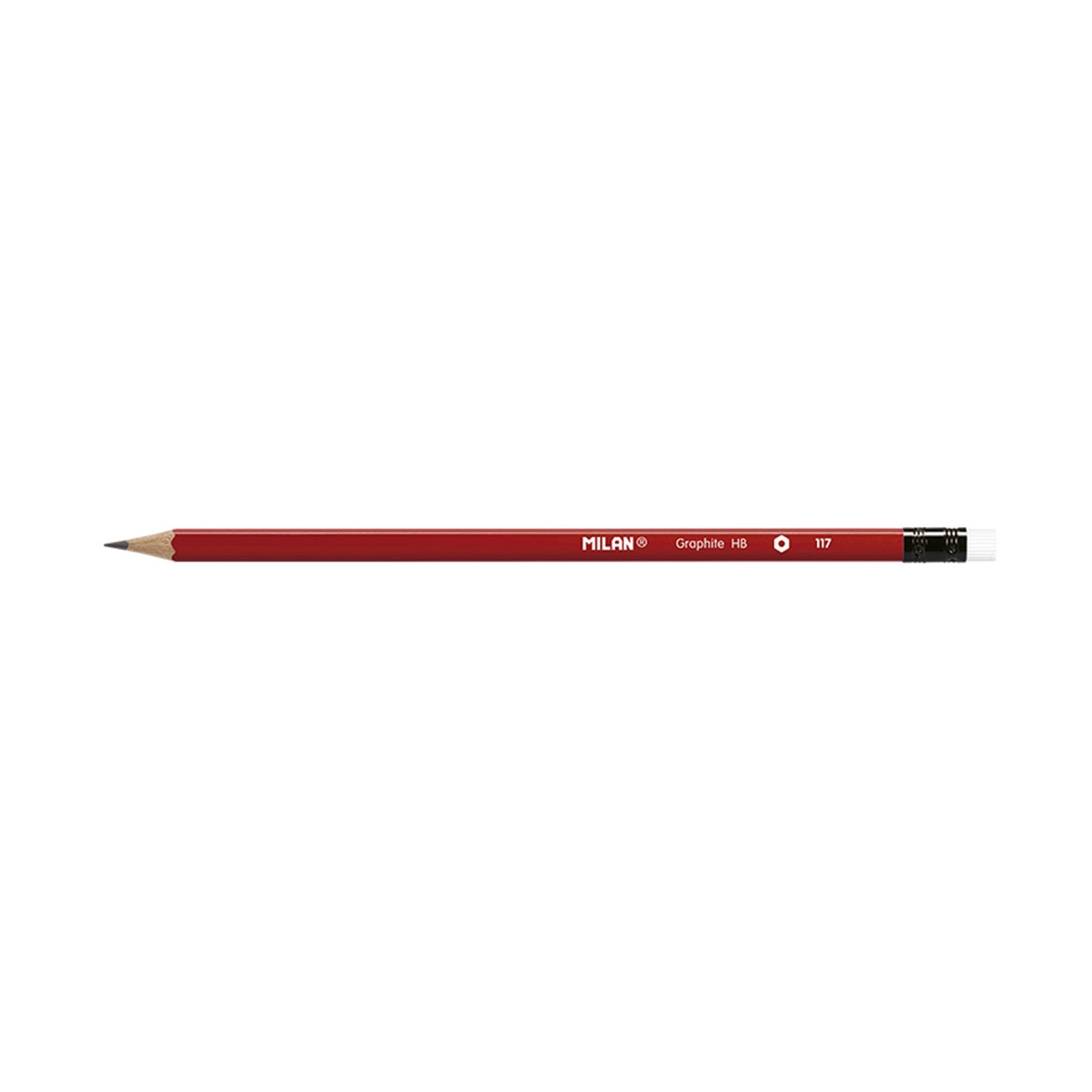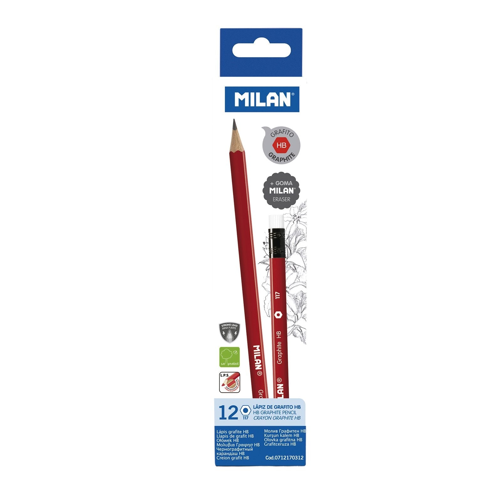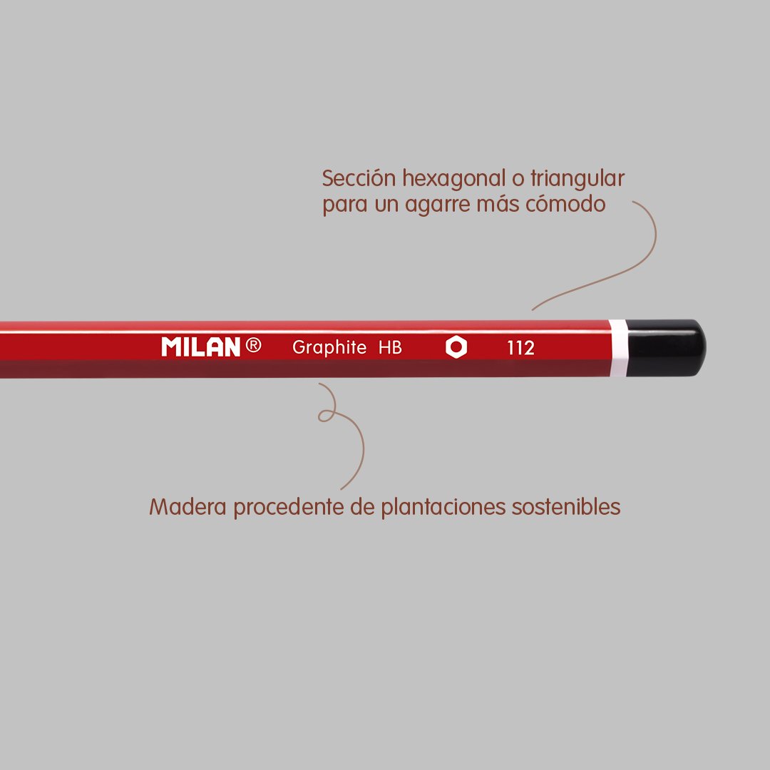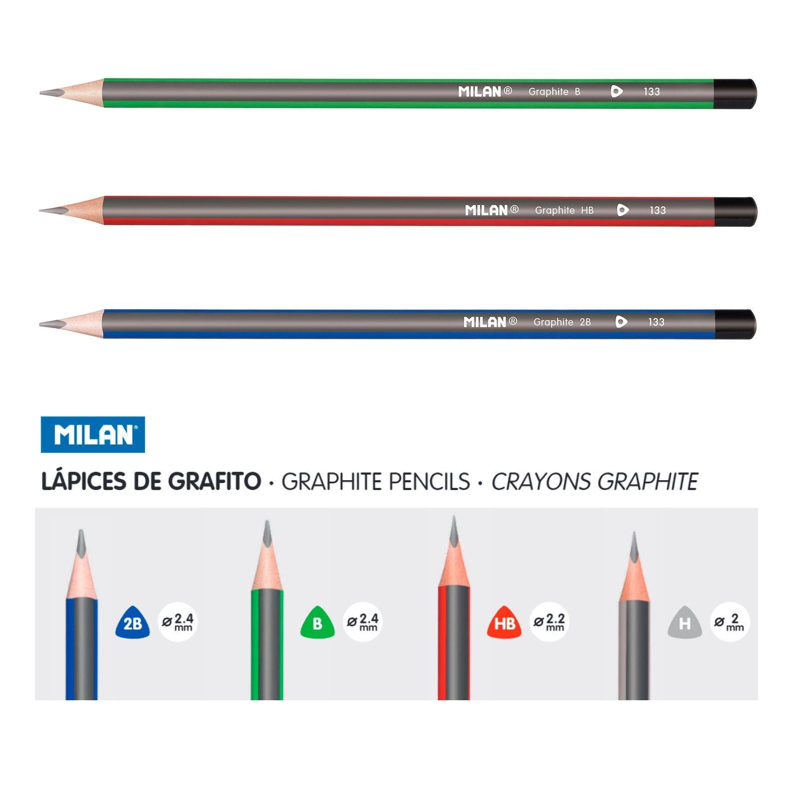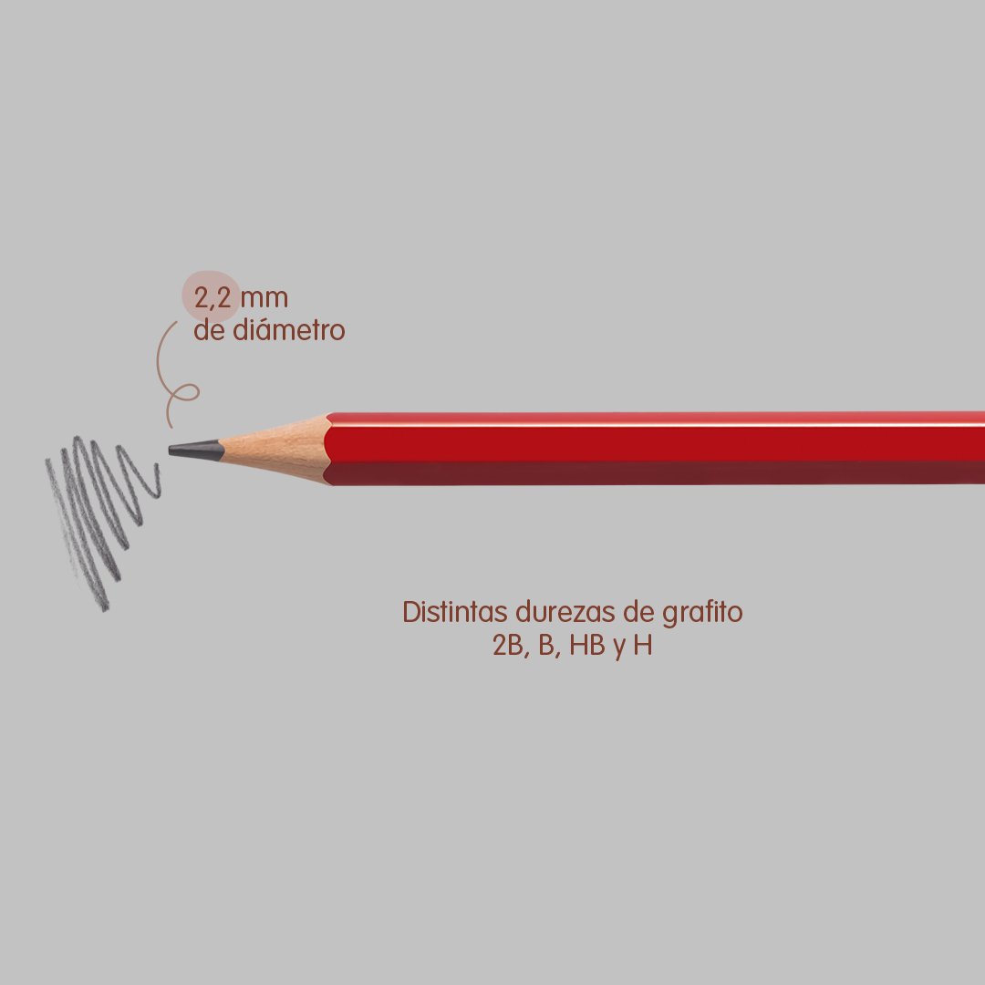 Lápices de grafito HB con goma. Mina de 2.2 mm Ø. Forma hexagonal. La graduación HB en una dureza de grafito media, recomendada para escritura y dibujo. La mina ofrece un trazo uniforme y resistente a la rotura, gracias al sistema LPS (Lj Protection System) que protege la mina gracias a su adhesión con la madera. Madera procedente de plantaciones sostenibles.