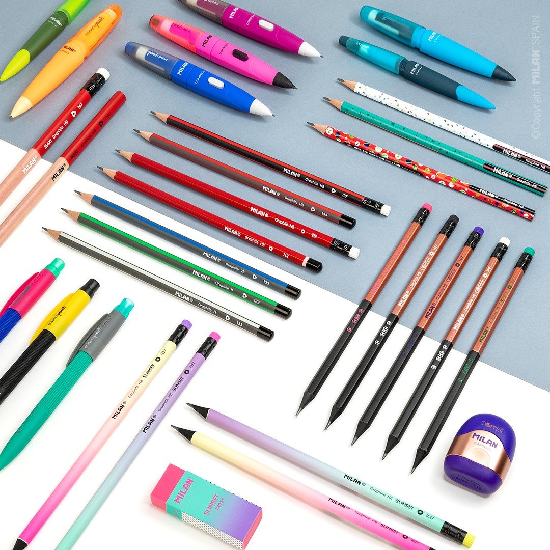Lápices de grafito HB con goma. Mina de 2.2 mm Ø. Forma triangular ergonómica. La graduación HB en una dureza de grafito media, recomendada para escritura y dibujo. La mina ofrece un trazo uniforme y resistente a la rotura, gracias al sistema LPS (Lj Protection System) que protege la mina gracias a su adhesión con la madera. Madera procedente de plantaciones sostenibles.