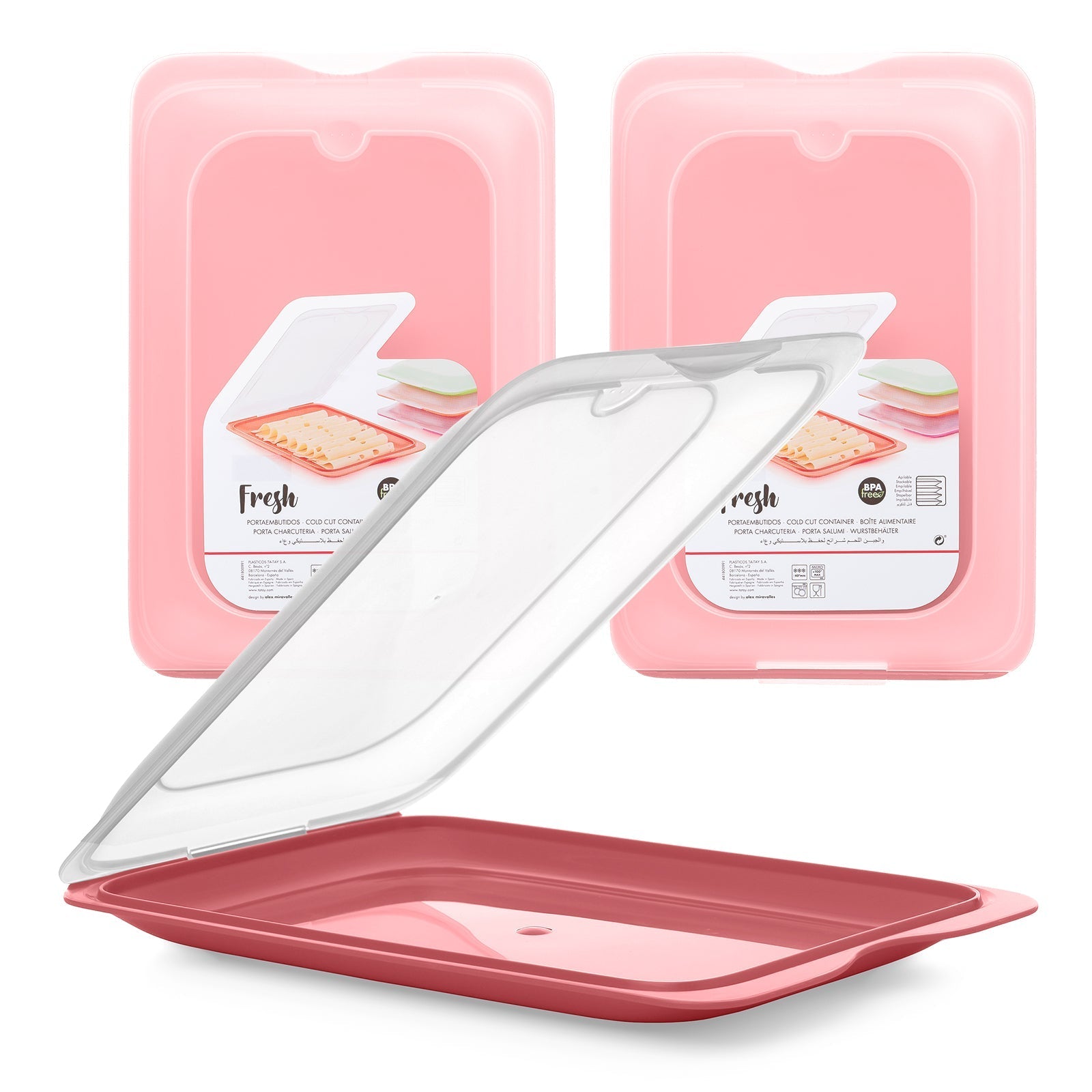 Recipiente porta embutidos TATAY con sistema Fresh para una conservación óptima de las lonchas de embutidos y quesos en tu nevera. Además, es ideal para transportar alimentos y fiambres, como el jamón cocido. Medidas: 25.2 x 17 x 3.2 cm.