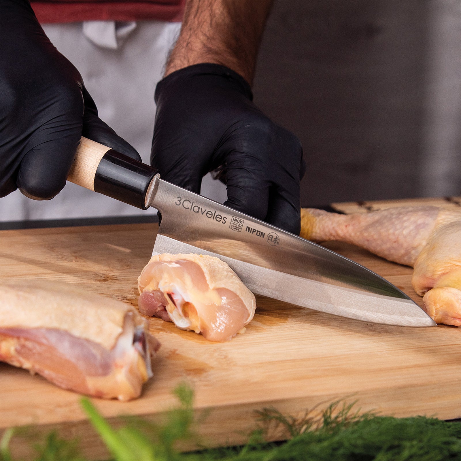 Juego de 3 cuchillos profesionales de la gama 3 Claveles NIPON de estilo japonés, donde predominan las líneas rectas en la forma del mango, pensado para el uso diario sin renunciar al diseño. Especiales para realizar cortes precisos y profundos por el filo en un solo lado al estilo tradicional de la cocina asiatica.