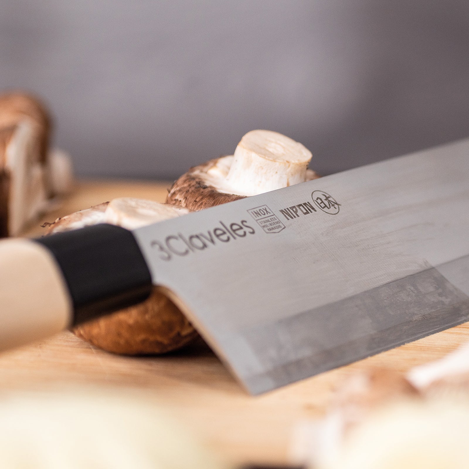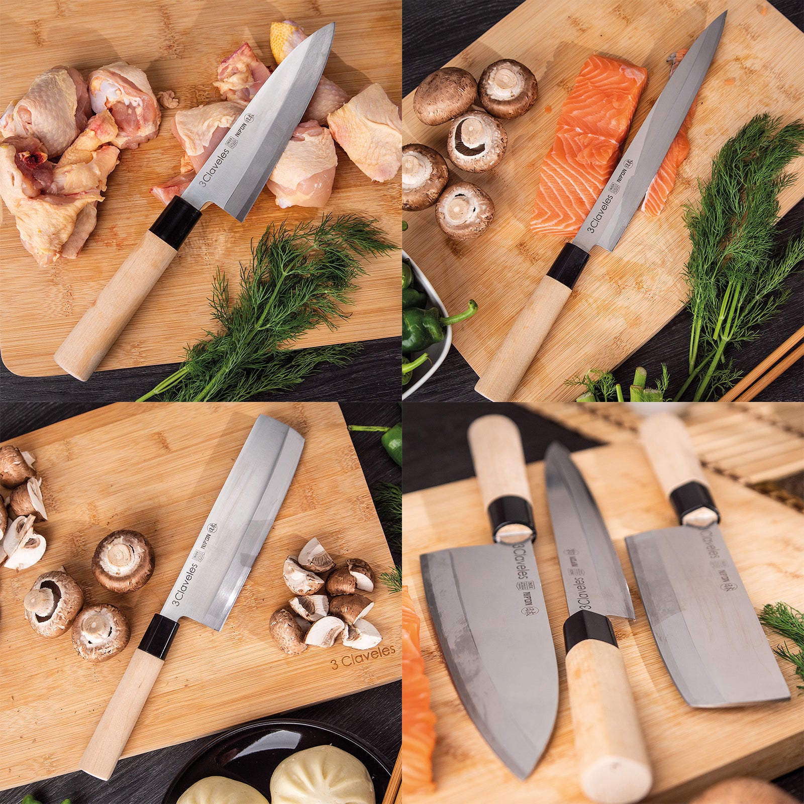 3 Claveles NIPON - Kit Cuchillos Medianos Tipo Japonés Acero Inoxidable y Mango de Arce