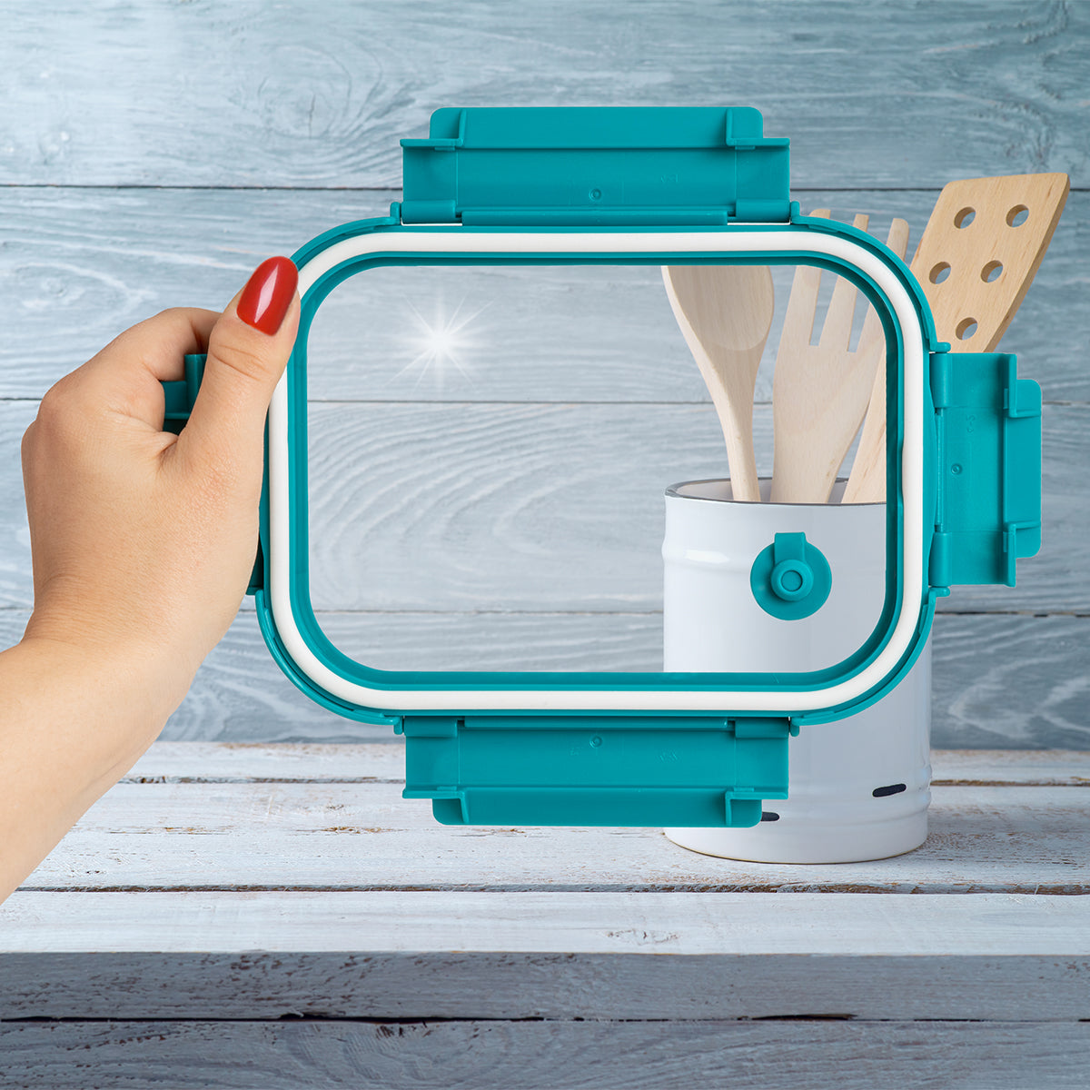 Destaca por su ligereza y resistencia, perfecto para almacenar y para que te lo puedas llevar a cualquier lugar sin preocuparte por el peso. La tapa está fabricada en cristal con válvula de silicona y cierre ClipLock System de 4 pestañas completamente 100% hermético. Recipiente especialmente diseñado para el microondas.