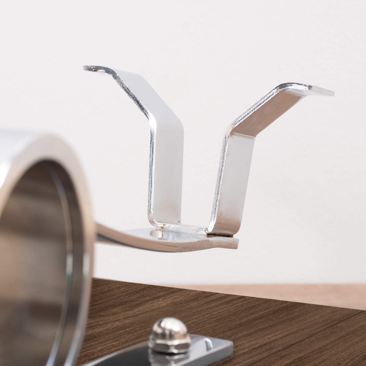 Su sistema de casquillos giratorios permiten girar el jamón los grados que se desee sin necesidad de soltar la pata. La sujeción de la punta tiene forma de V y no lleva pincho para evitar perforar el jamón y/o dañarlo. Es un jamonero con buena estabilidad y muy versátil, manejable y cómodo de usar y limpiar.