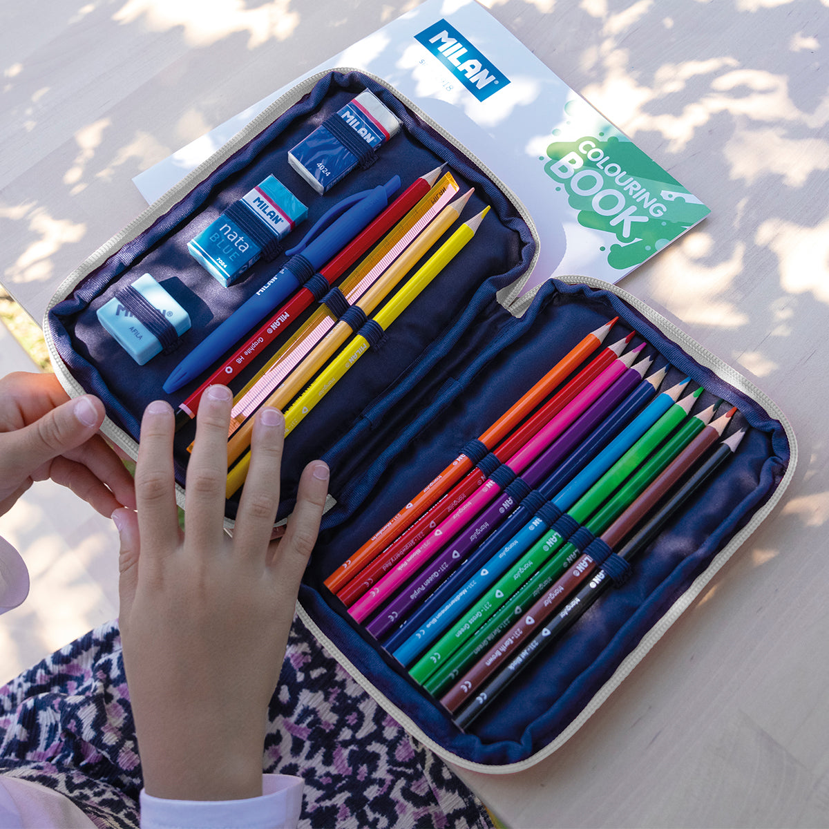 Plumier de 2 pisos Milan Colección 430 since 1918 de color rosa, que permite mantener el material escolar siempre ordenado y de fácil acceso. Cremalleras reforzadas, estructura flexible y diseño inspirado en los colores originales de las gomas de borrar MILAN, fabricadas en España desde 1918.