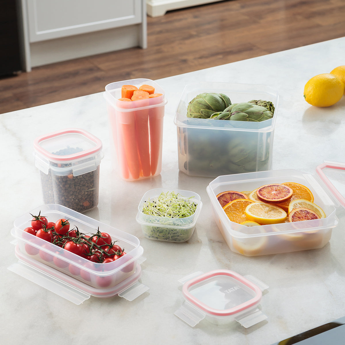 Cuerpo transparente para poder ver el contenido en todo momento. Es apto para lavavajillas, microondas, nevera y congelador desde -40ºC hasta 120ºC. Está libre de BPA y es seguro para la alimentación. Fabricado en España con la garantía de Plásticos TATAY.