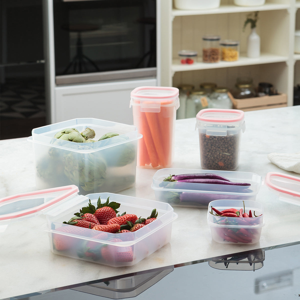 Recipiente hermético para alimentos cuadrado de 0.3L TATAY Clip Safe fabricado en plástico polipropileno, un material muy resistente, reciclable, y apto para la alimentación. Además, es muy fácil de limpiar.