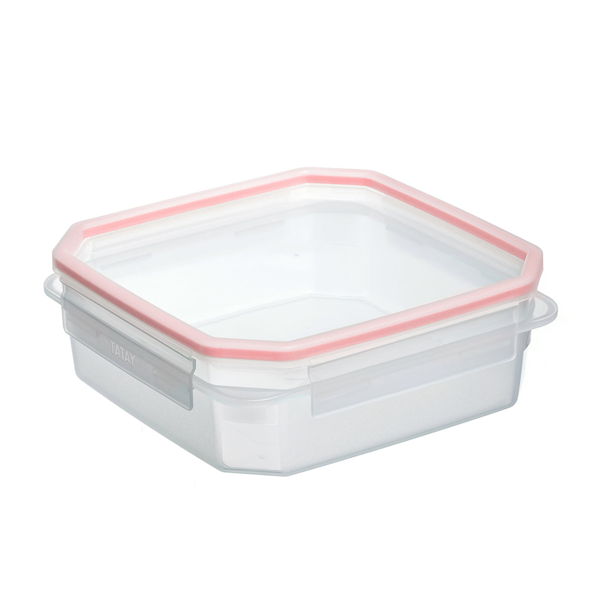 Recipiente hermético para alimentos cuadrado de 1.3L TATAY Clip Safe fabricado en plástico polipropileno, un material muy resistente, reciclable, y apto para la alimentación. Además, es muy fácil de limpiar.