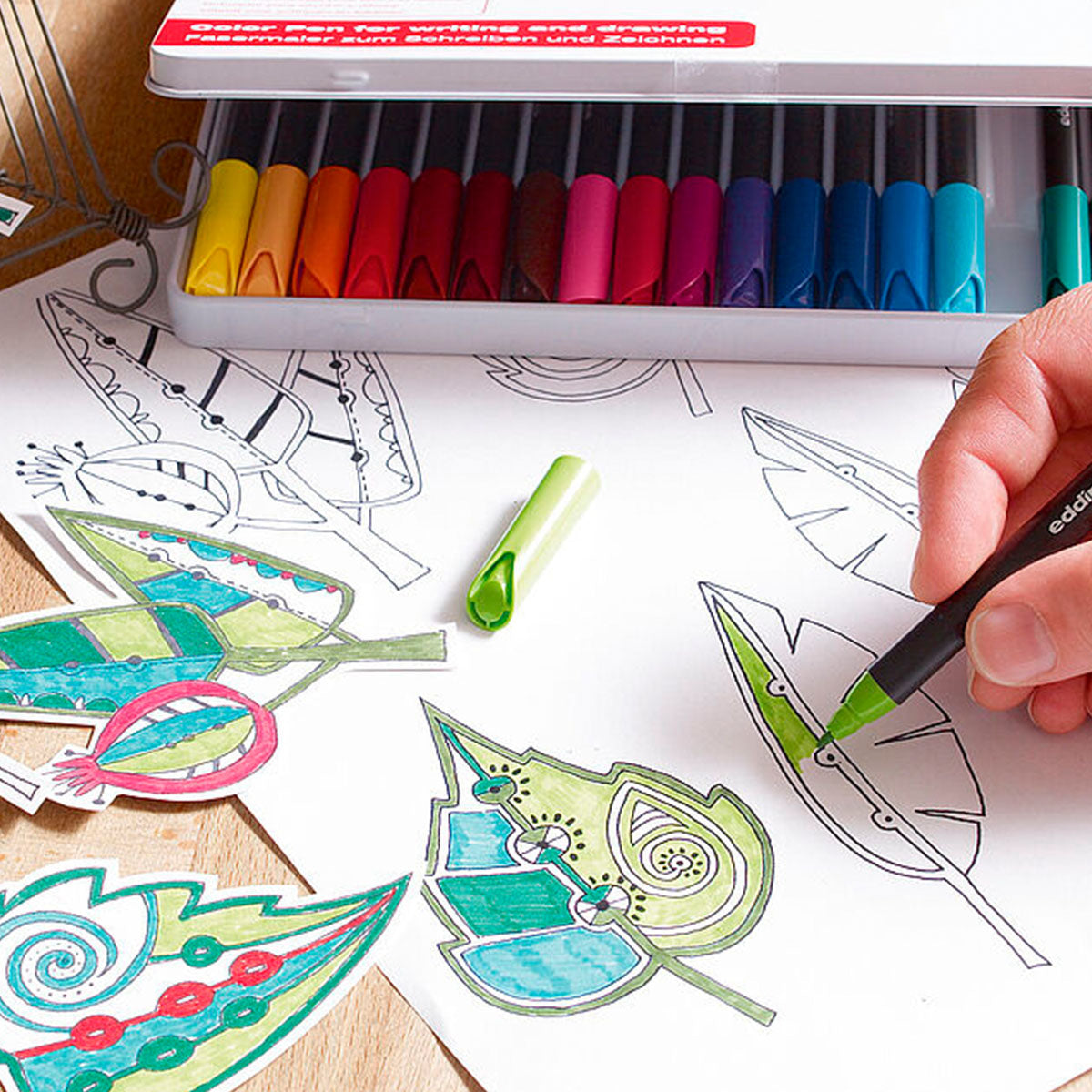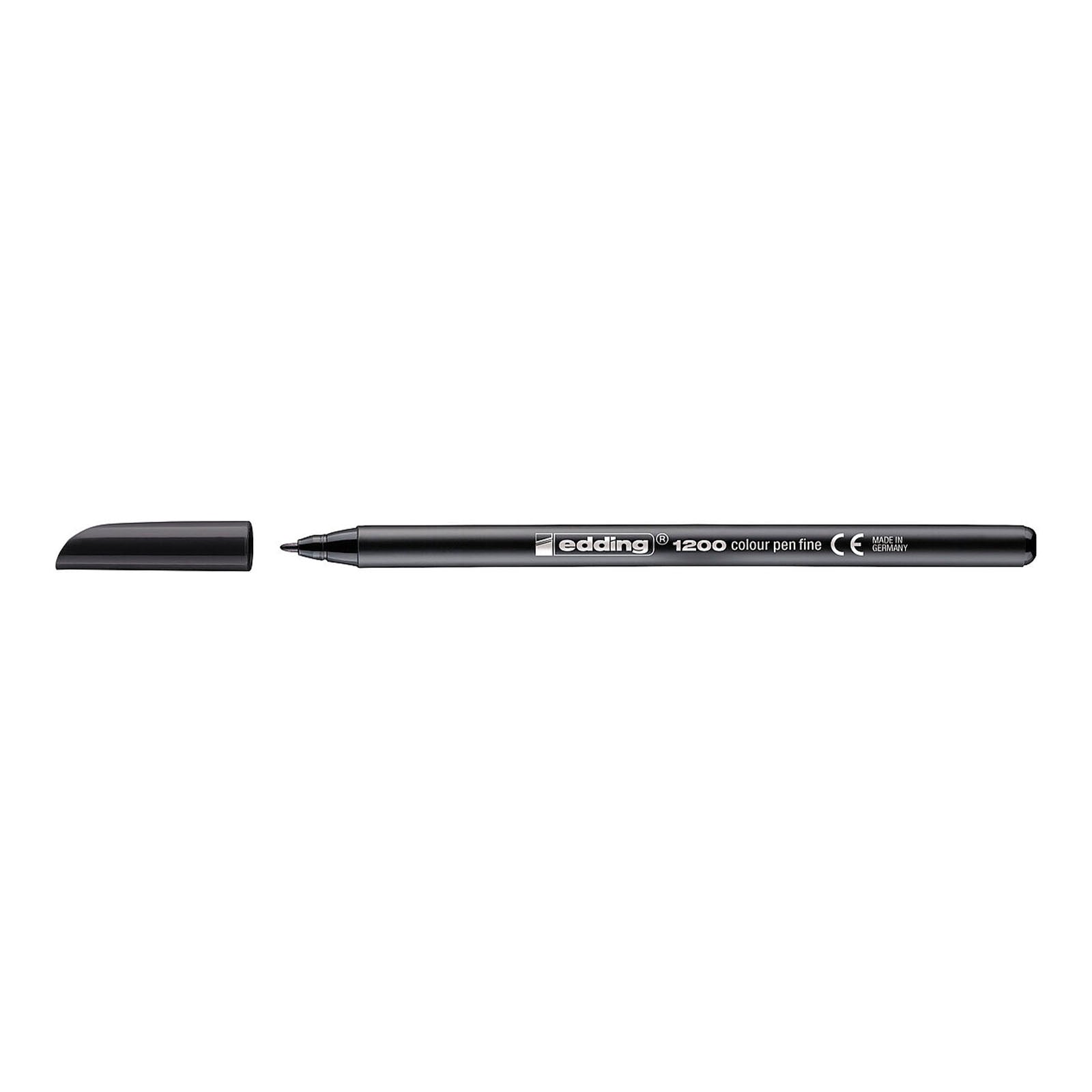 Rotulador de fibra Edding 1200, de trazo fino con punta redonda de 0.5 mm de grosor. La tinta del rotulador es a base de agua y resistente a la luz, con lo que se garantizan resultados duraderos sobre papel o cartulina de colores claros.
