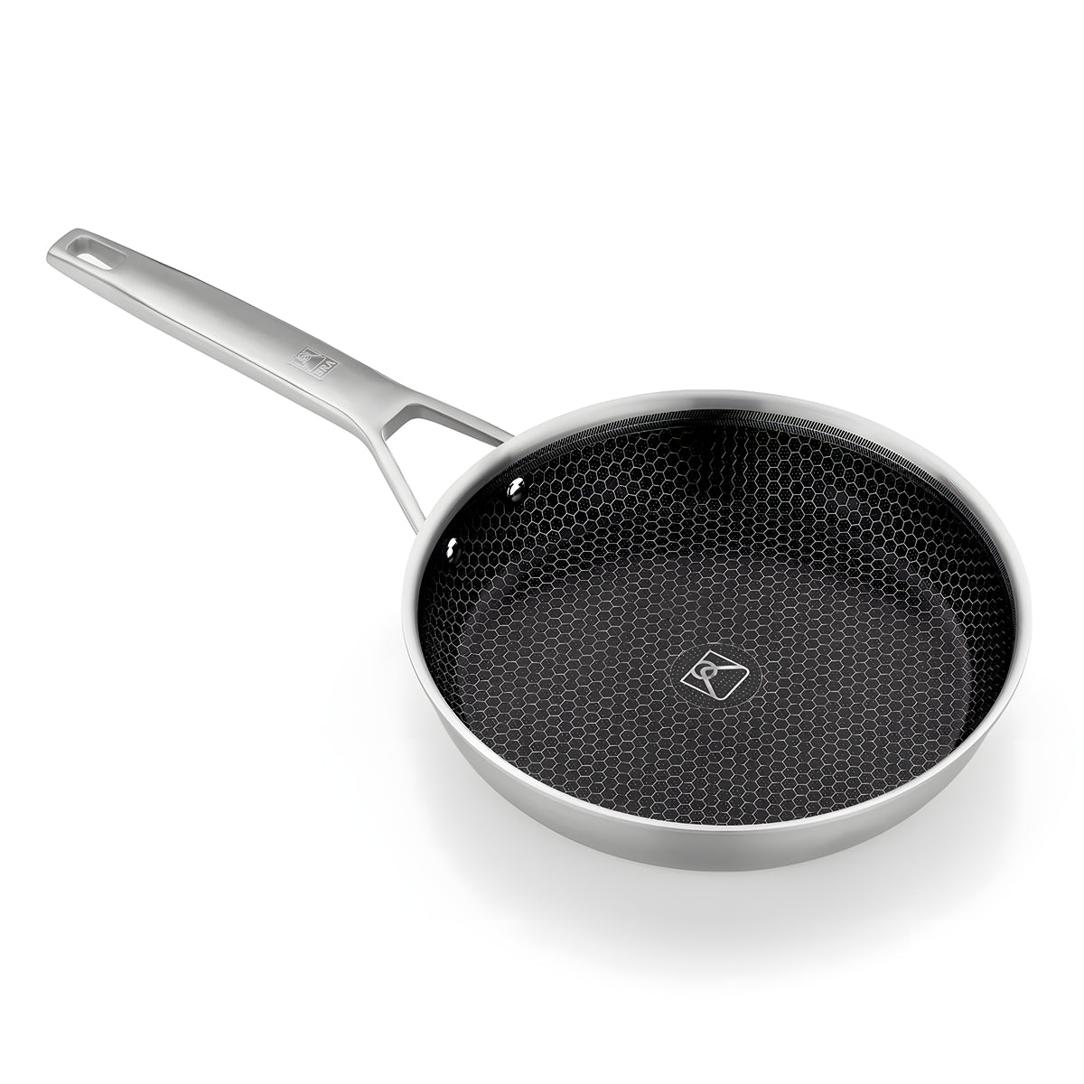 Capa interior de acero inoxidable austenítico 18/10 de 0.5 mm para un contacto seguro con los alimentos, capa intermedia de aluminio de 1.5 mm y capa exterior de acero inoxidable 430 con 18 % de cromo de 0.5 mm para compatibilidad con inducción. El mango ergonómico de acero inoxidable ofrece un agarre muy seguro con remaches sin movimiento.