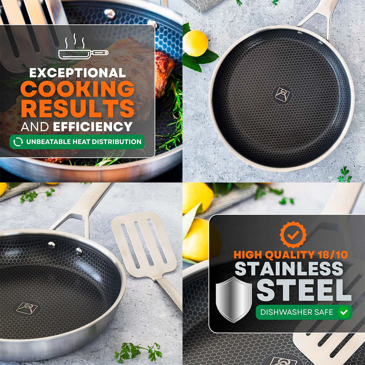 Es apta para todas las fuentes de calor, incluida la inducción y el horno, ya que dispone de un amplio fondo difusor full induction, que permite una mejor y más eficiente transmisión del calor a todo el cuerpo de la sartén, calentándose antes de una manera mas homogénea. Esto supone un menor consumo energético y una mayor rapidez en la cocción. Sus celdas reforzadas de nido de abeja admiten utensilios metálicos.