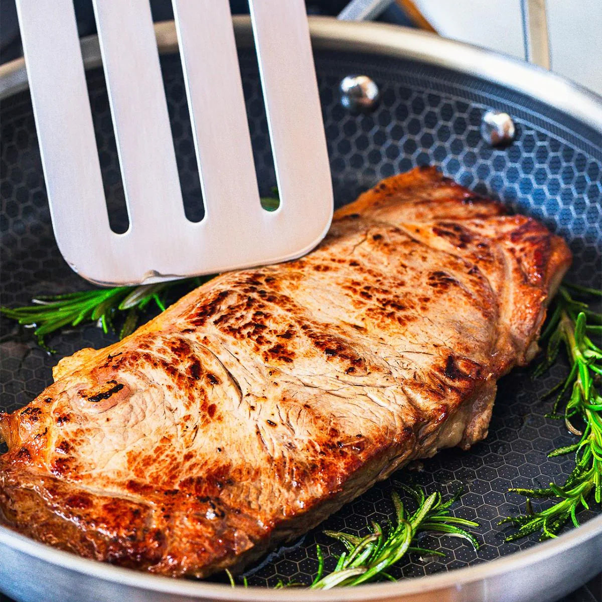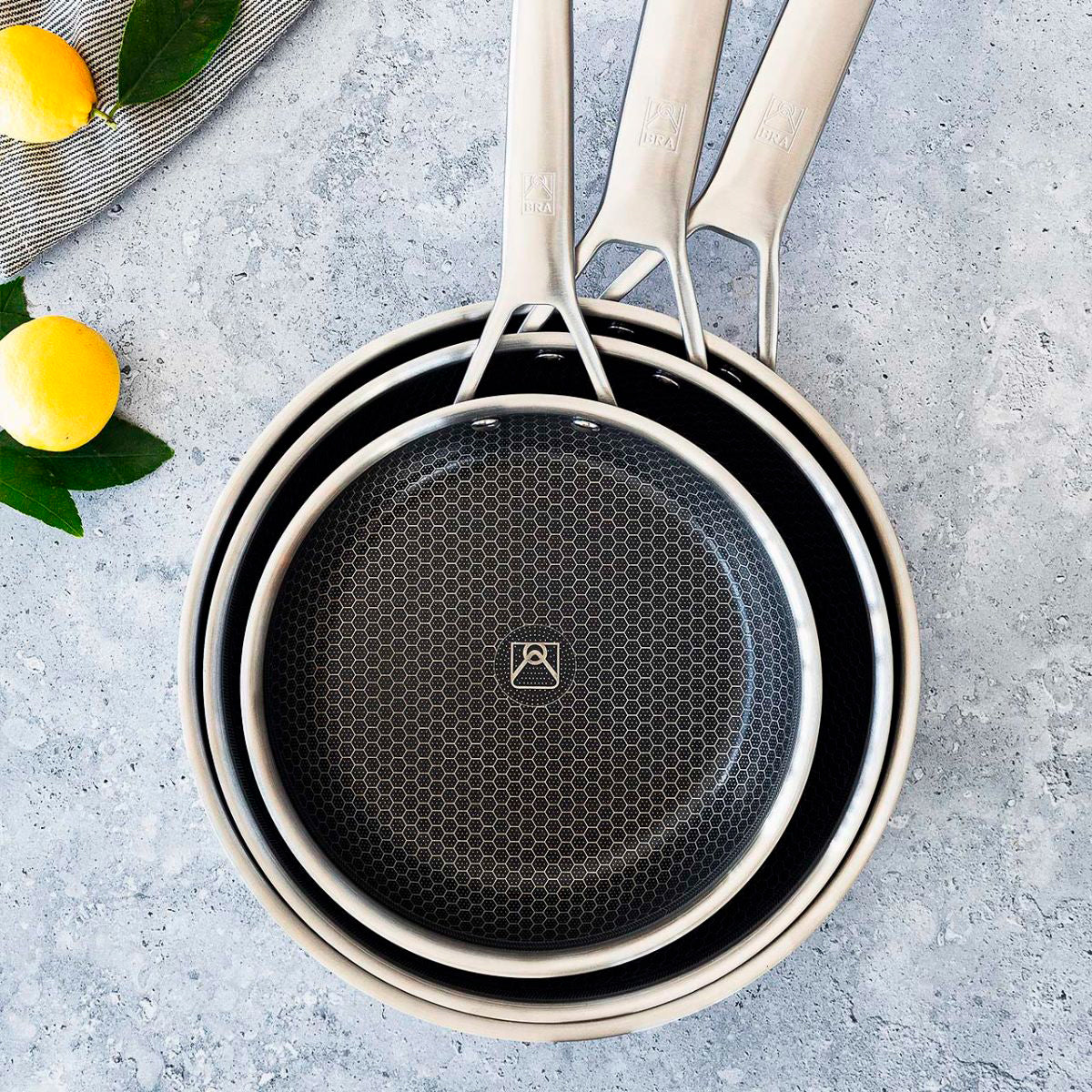 La sartén BRA Hybrid Cell es la mejor opción para cocinar de manera mas saludable y para una mayor resistencia y durabilidad. Su diseño proporciona unos grandes resultados y una gran eficiencia de cocción, gracias a su fabricación en acero inoxidable 18/10 de alta calidad con triple fondo difusor y revestimiento antiadherente cerámico libre de PFAS reforzado con celdas de acero Hybrid Technology. Resiste temperaturas de hasta 220 °C.