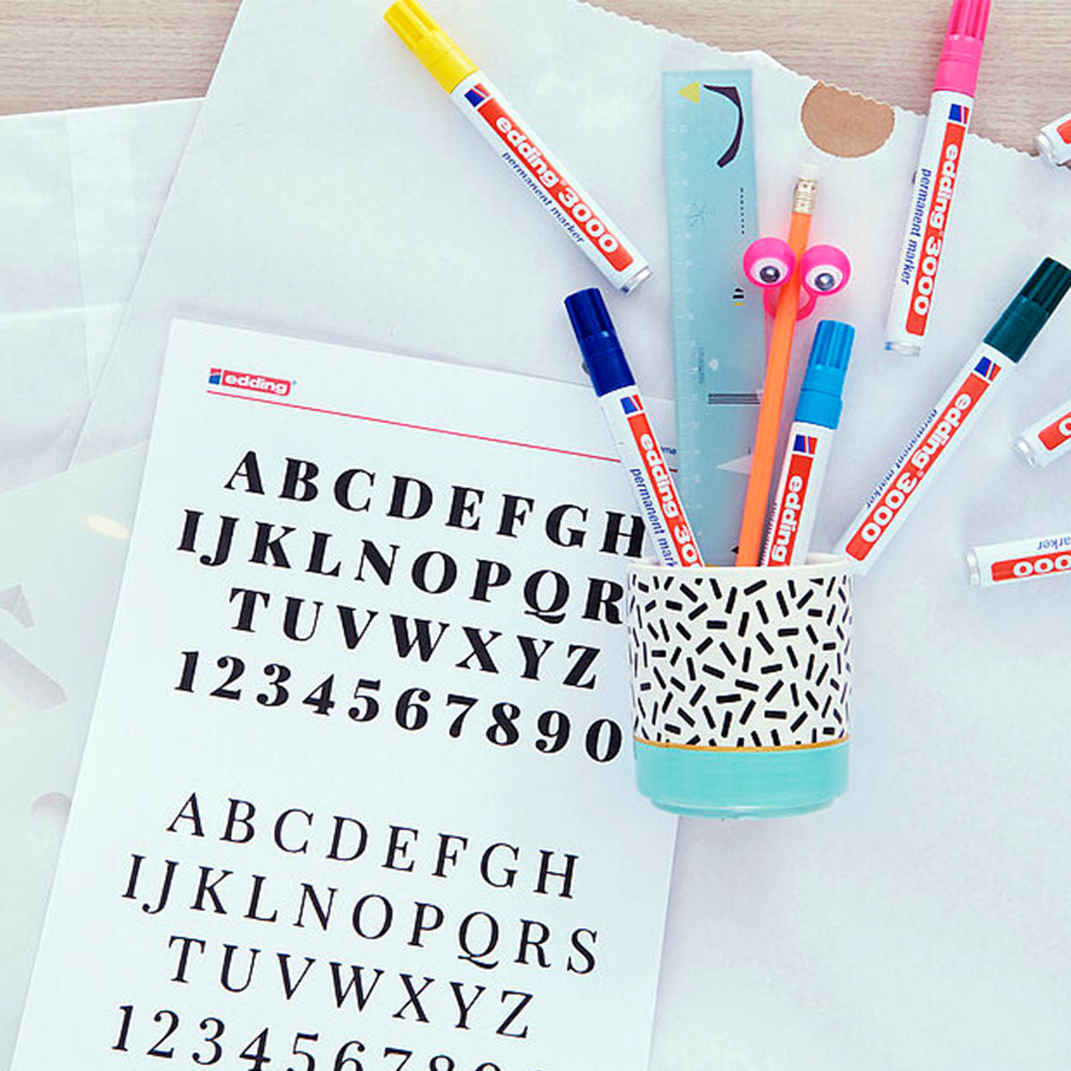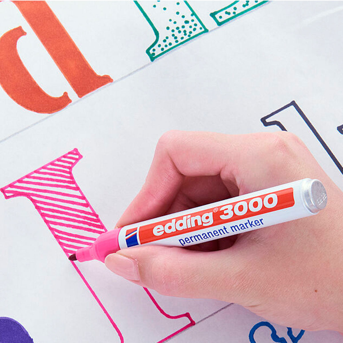 Rotulador permanente Edding 3000, ideal para escribir, marcar y rotular sobre casi cualquier tipo de material, como metal, plástico y vidrio. Trazo de 1.5-3 mm. Es el asistente idóneo para tus tareas diarias que se adapta igual de bien a cualquier cocina, estudio o taller como a tu mano.