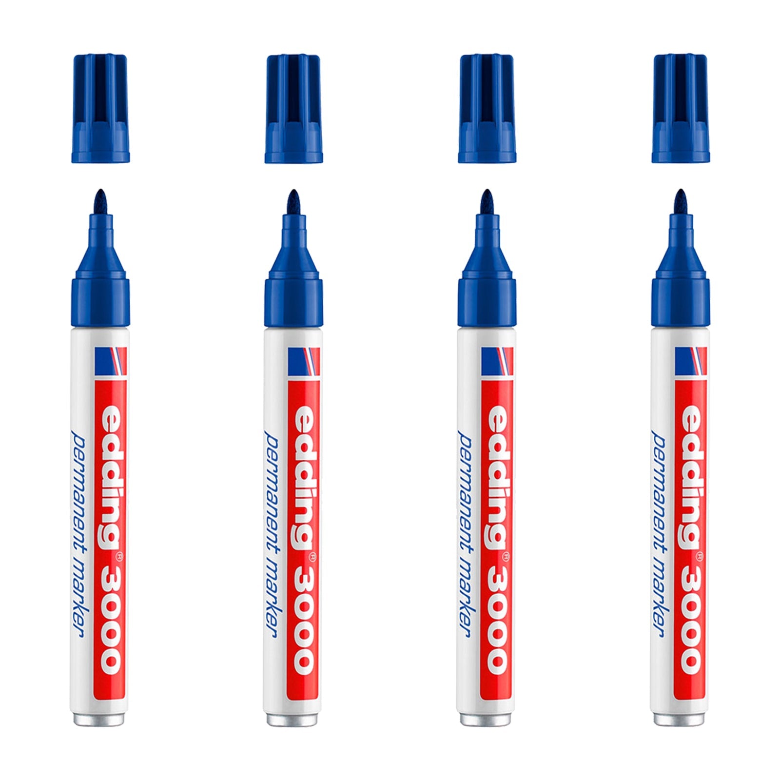 EDDING 3000 - Set de 4 Rotuladores Permanentes Punta Redonda 1.5-3 mm. Azul