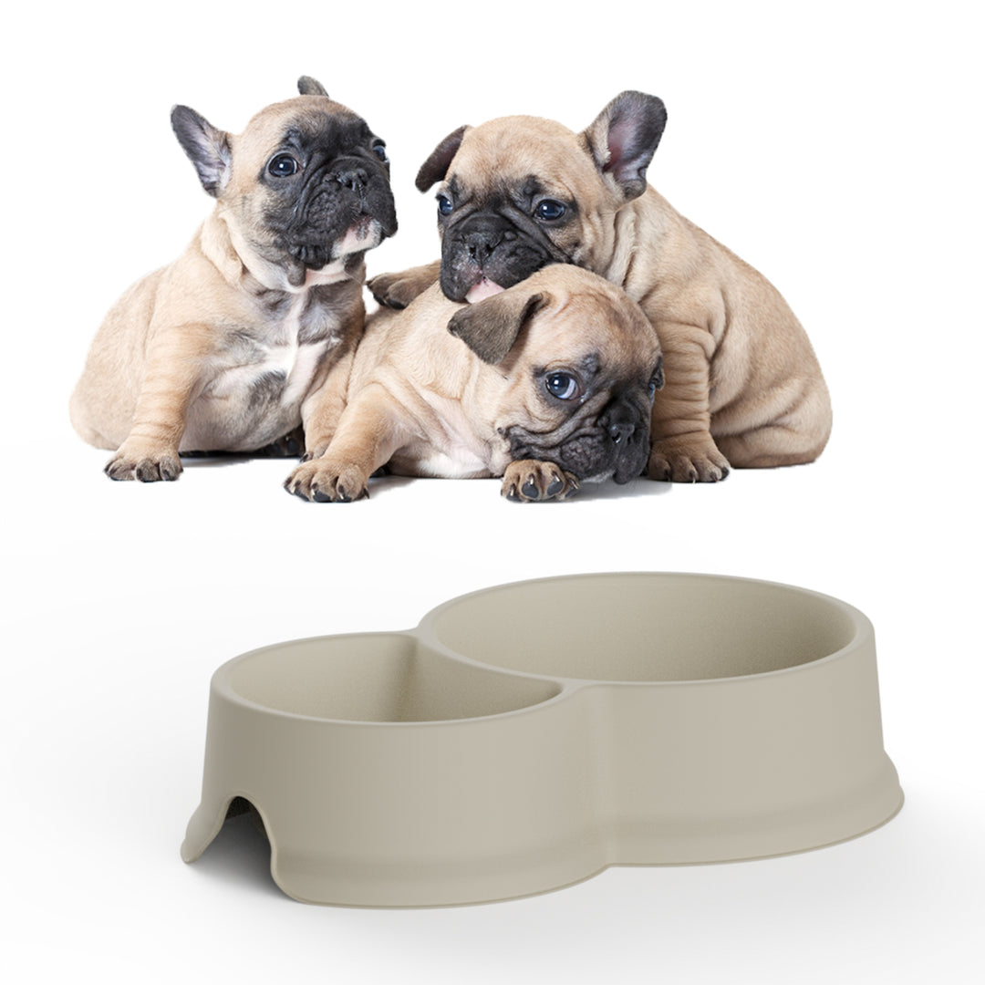 Plastiken Koko - Comedero Doble 0.3L + 0.65L para Mascotas Pequeñas. Ecru