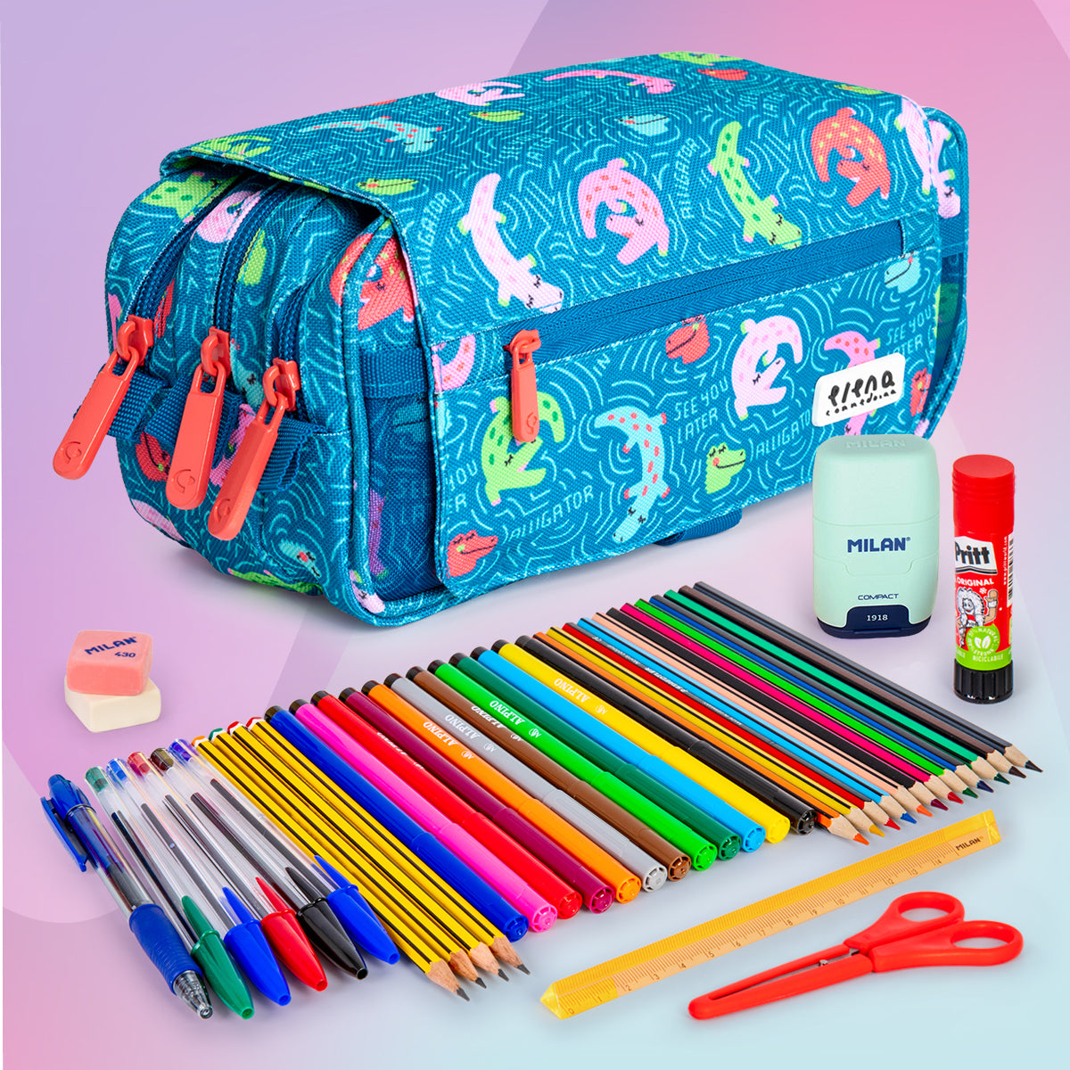 Grafoplás Design - Estuche Portatodo Triple con Solapa para Material Escolar. Alligator