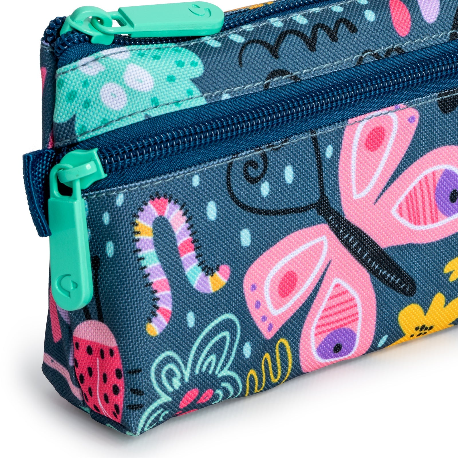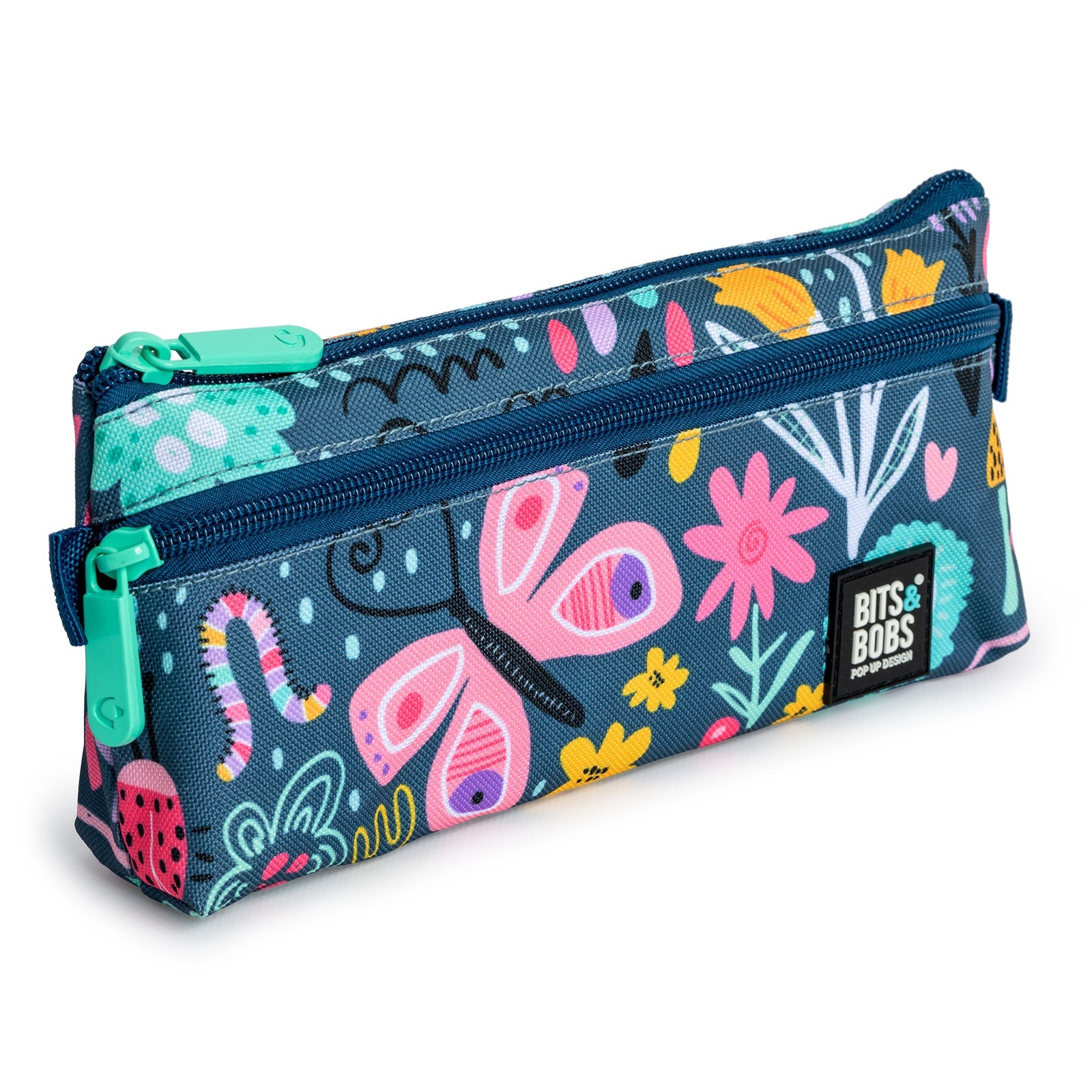 Estuche portatodo plano Grafoplas Bits Bobs Design de gran capacidad con 2 cierres de cremallera individuales. Perfecto para llevar todo tu material escolar ordenado y organizado según tus preferencias y tambien adecuado como neceser de diseño.