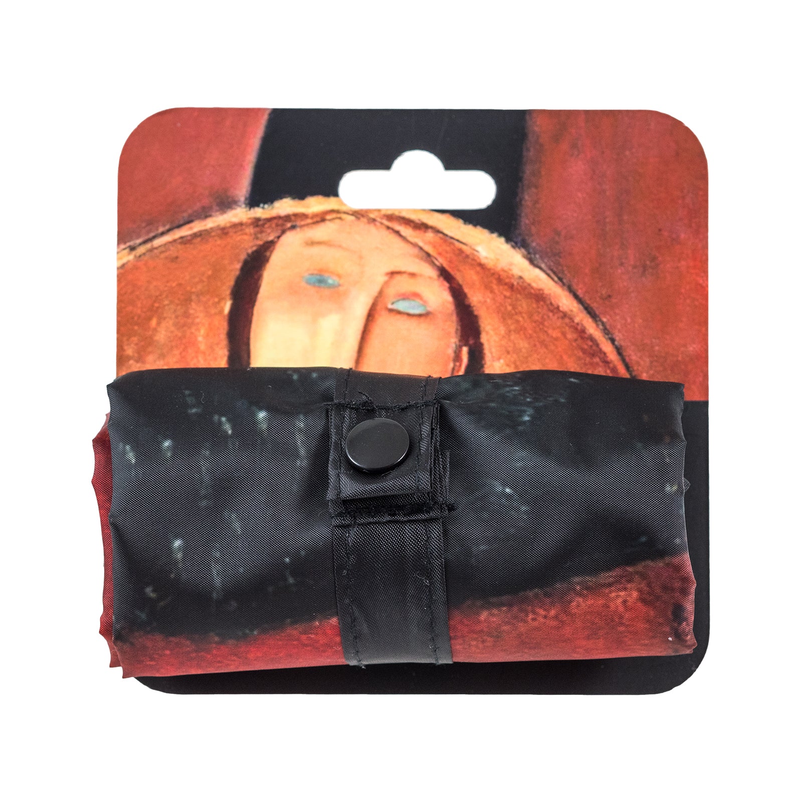 Bolsa plegable y reutilizable de la colección Modigliani de Javier. Al tener un tamaño reducido cuando está plegada, es ideal para llevarla siempre contigo a cualquier lugar: a la compra, en el coche, en el bolso, etc. y ¡dar un toque de color a tus días!