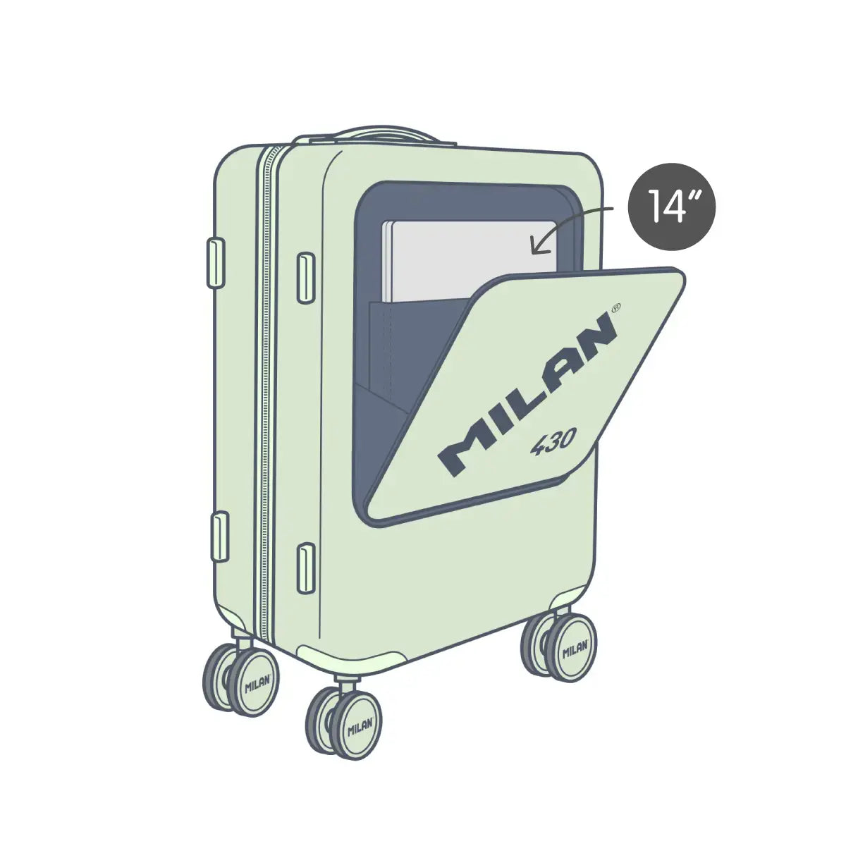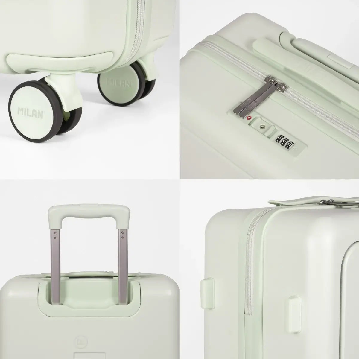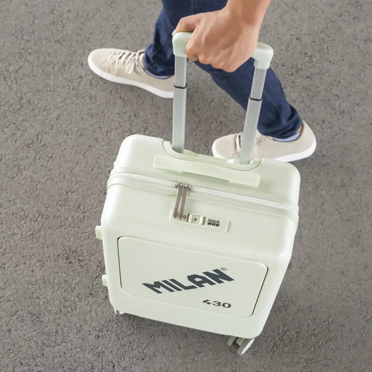 Maleta de viaje ligera y resistente MILAN Since 1918. Ideal como equipaje de mano para llevarla en la cabina del avión, como maleta de fin de semana o viajes cortos. Cierre de cremallera con sistema TSA (Travel Sentry® para inspecciones de seguridad sin daños) con combinación de tres dígitos. Dos posiciones para la apertura independiente del compartimento principal y el frontal. Maleta rígida y acabado rugoso exterior para mayor resistencia a las rasgaduras. Cuenta con 4 ruedas dobles giratorias de 360°, silenciosas. Asa superior y lateral para facilitar el manejo de la maleta. Mango telescópico de aluminio con 3 posiciones regulables.