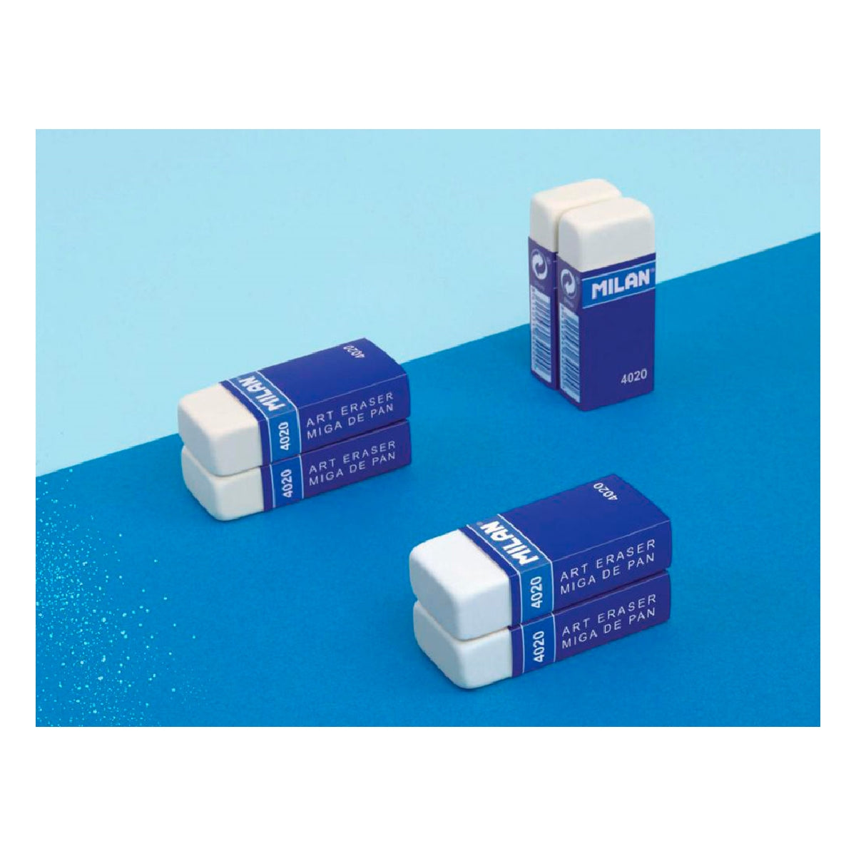 Goma suave de caucho sintético tipo \'miga de pan\'. Para borrar una amplia gama de lápices de grafito sobre toda clase de papeles. Con faja de cartónazul. Medidas goma: 5.5 x 2.3 x 1.3 cm.