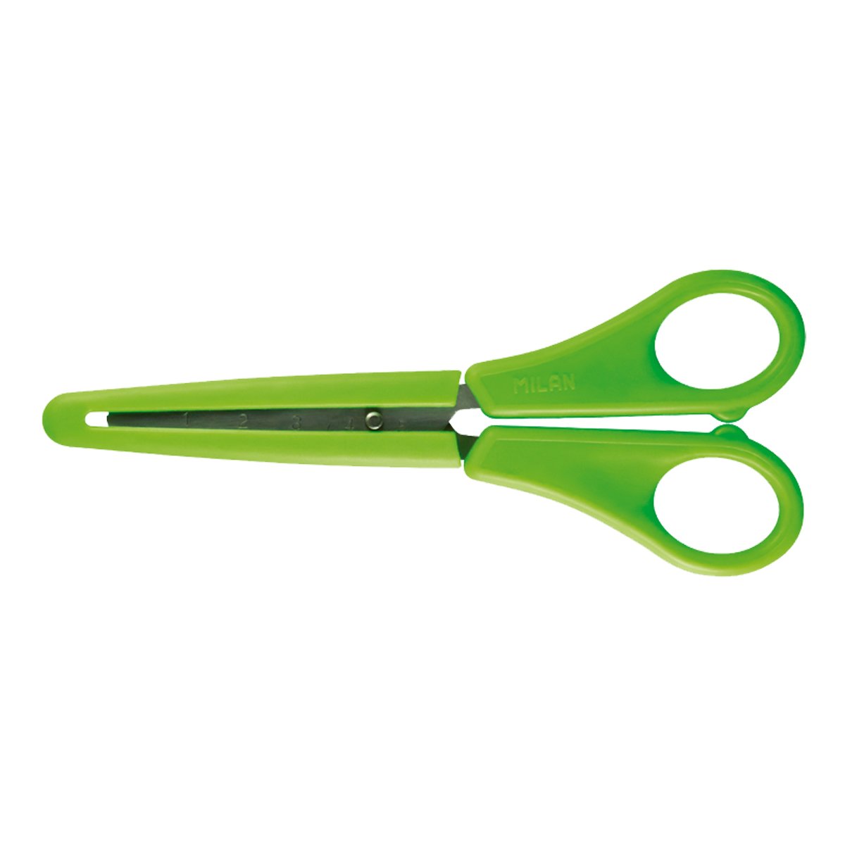 MILAN - Tijeras Escolares de 14.7 cm con Punta Redonda y Funda. Verde