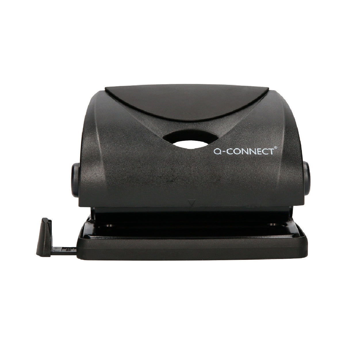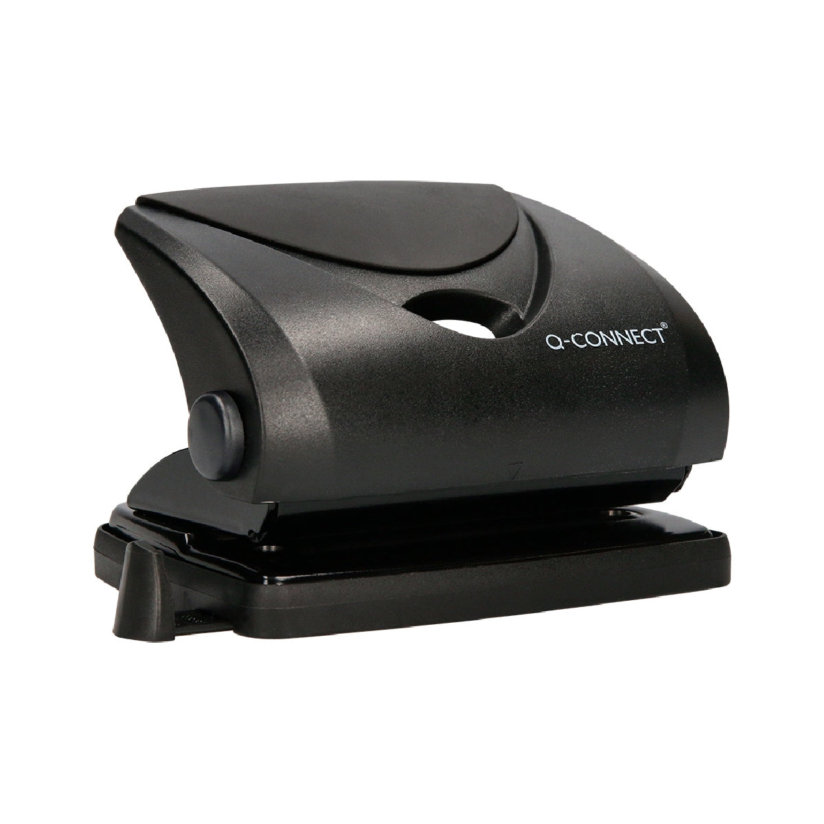 Parte superior de plástico y base metálica. con base antideslizante de plástico. Abertura de 2 mm. con capacidad para perforar hasta 20 hojas. Con guía ajustable para alinear el papel. Medidas de la base: 110 x 80 mm.