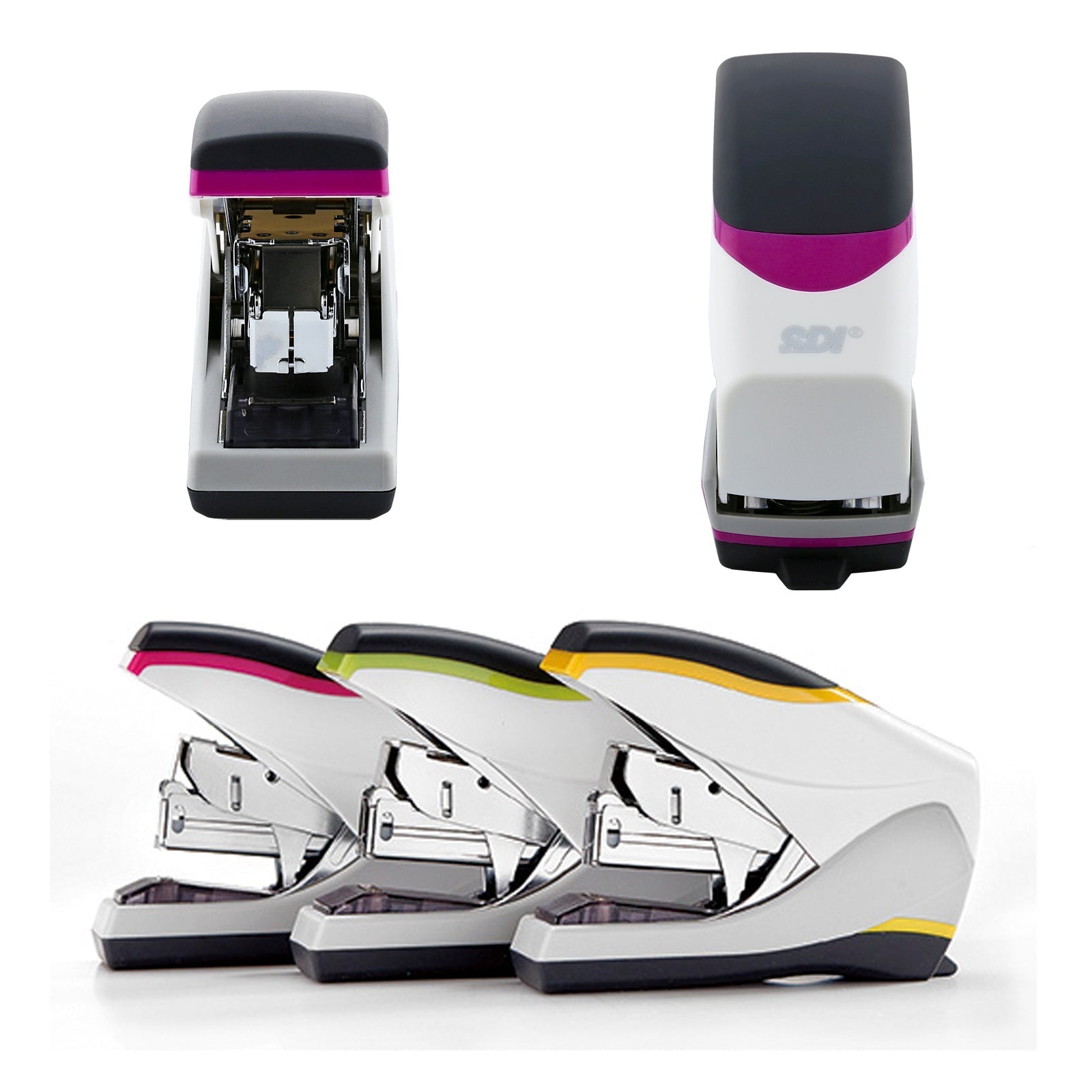 Mecanismo patentado por SDI que ahorra un 50% de esfuerzo para un uso continuado con base antideslizante y sujeción ergonómica muy suave al tacto. Grapa en plano, ahorra un 30% mas de espacio que el resto de grapadoras.