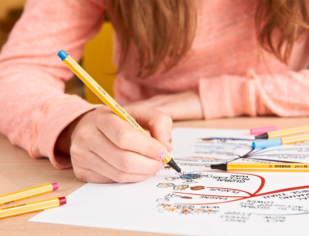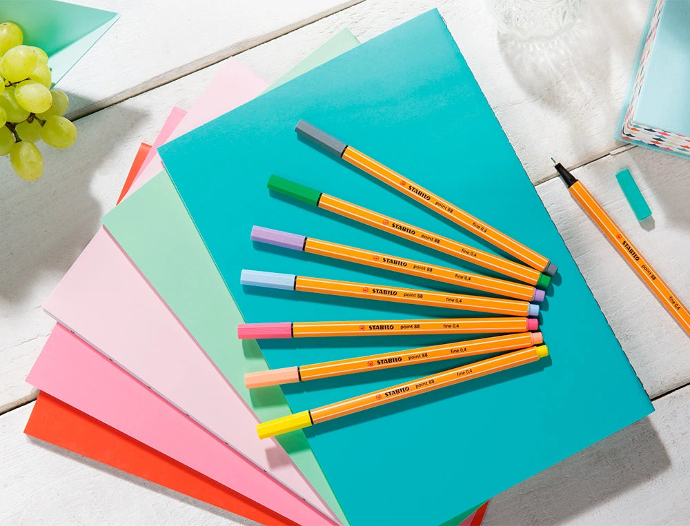 El STABILO point 88 es el rotulador punta fina perfecto para crear notas, con una escritura ordenada, subrayando, creando pequeños bocetos y está disponible en 47 colores. Tiene la punta de fibra con refuerzo metálico y es apto para su uso con reglas y plantillas. No se seca si se deja sin tapón durante largos periodos. Tapón ventilado. Ancho de trazo: 0.4 mm.