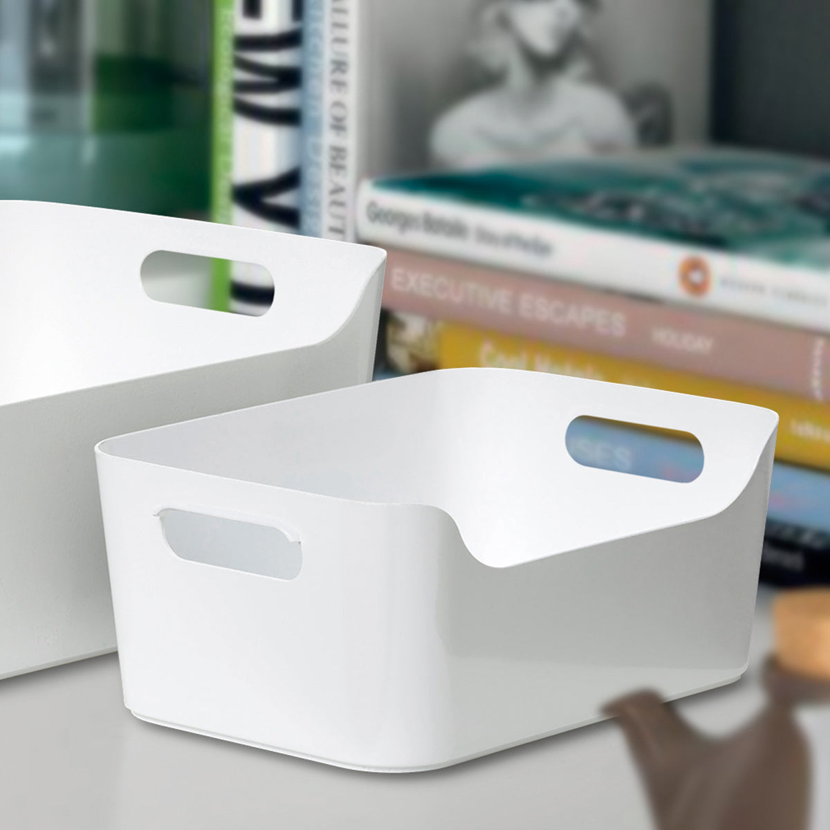 · DISEÑADO PARA HACERTE LA VIDA MÁS CÓMODA Y PRÁCTICA: Su forma de cesta profunda los convierte en organizadores prácticos para tener lo que necesitas siempre a mano y a la vista. Además, cuenta con dos asas para una mayor ergonomía.