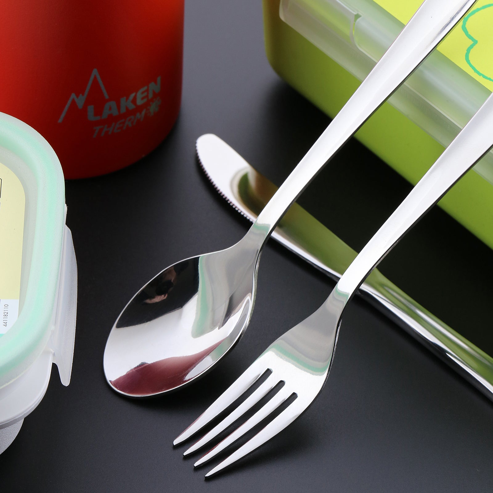 • Juego de cubiertos: incluye cuchillo, cuchara y tenedor en acero inoxidable AISI 18/0 libres de níquel y con un tamaño más reducido, adaptado a las bolsas térmicas.